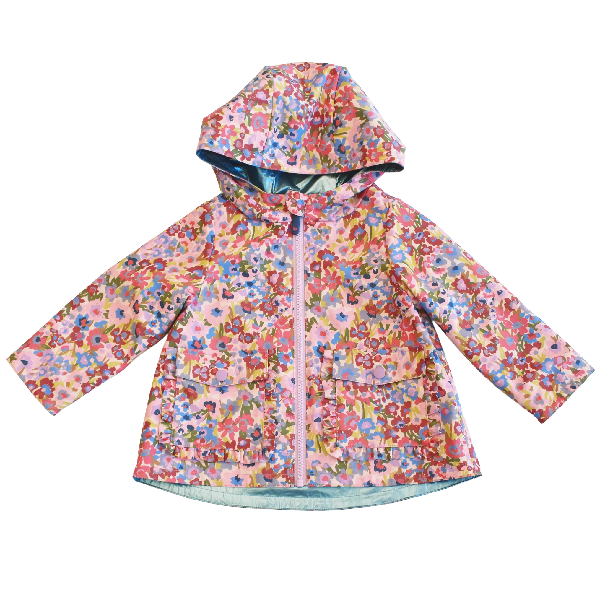 Girls Rafa Reversible Raincoat- Burgundy Sketched Floral