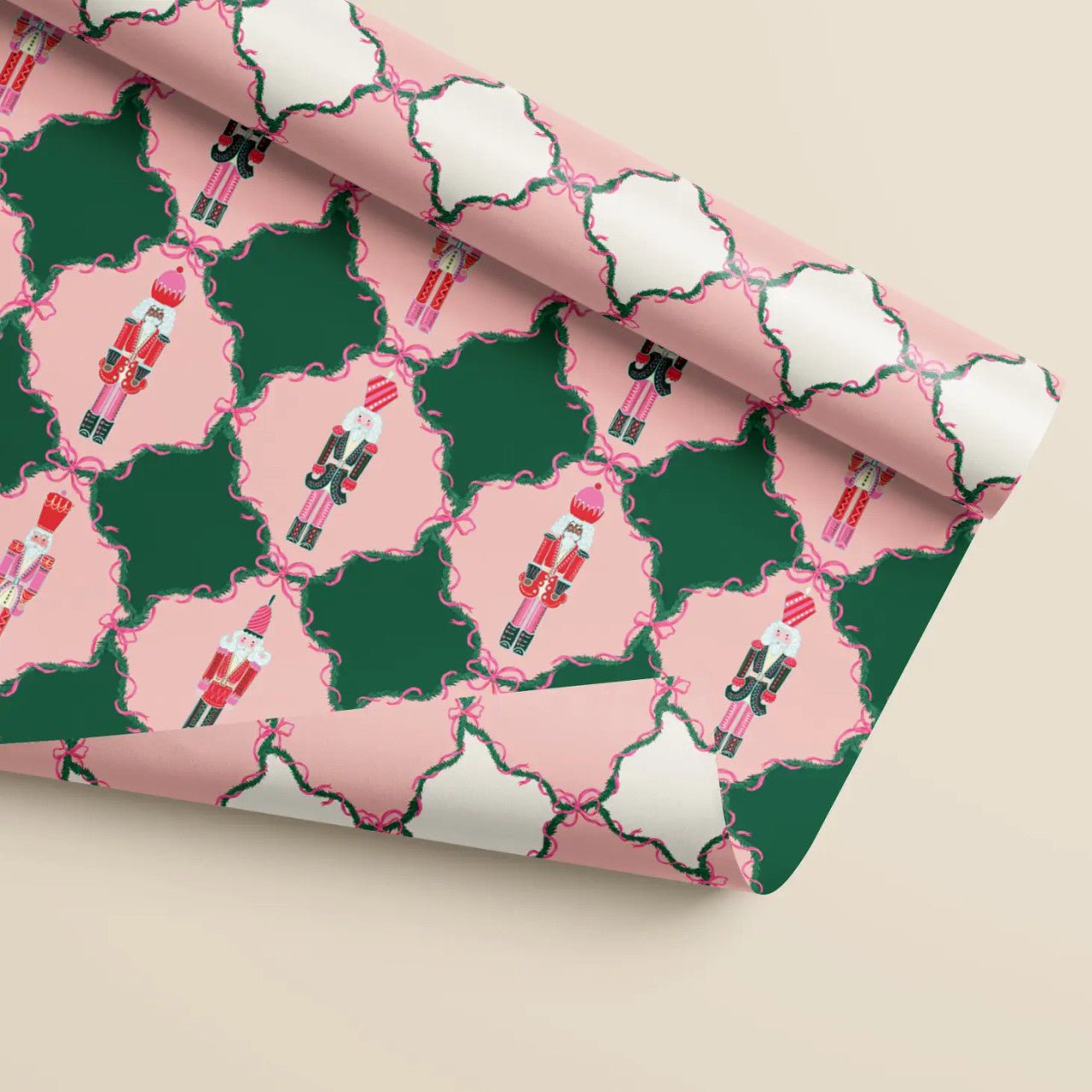 Pink Nutcracker Trellis Bows Double Sided Gift Wrap