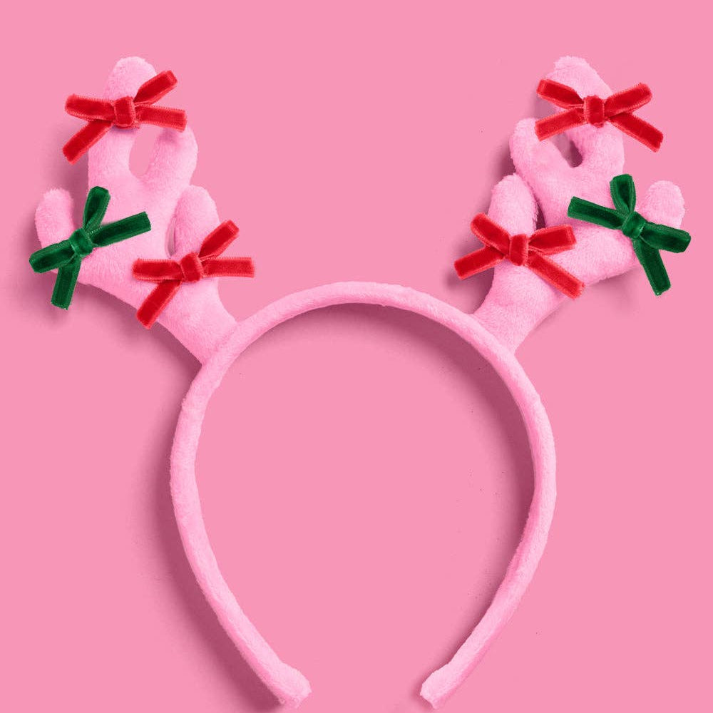 Pink Reindeer Holiday Headband
