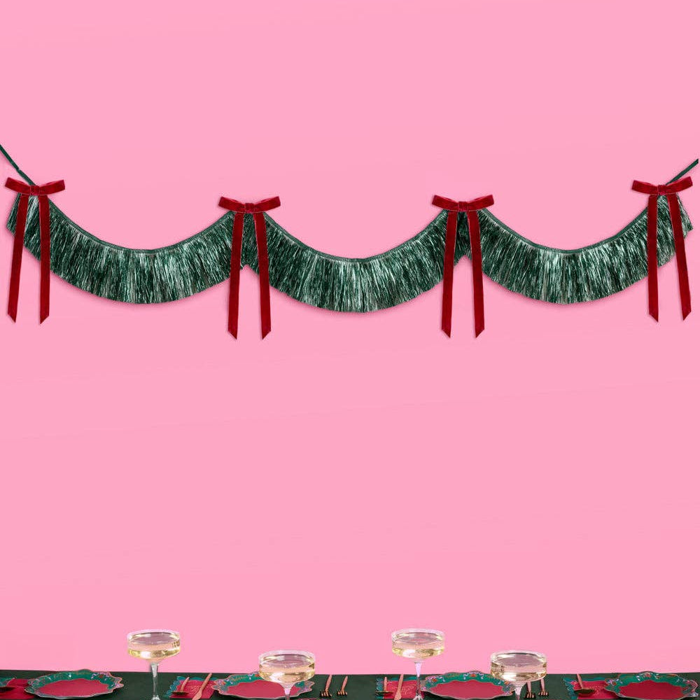 Xmas Bow Banner - fringe + velvet bows