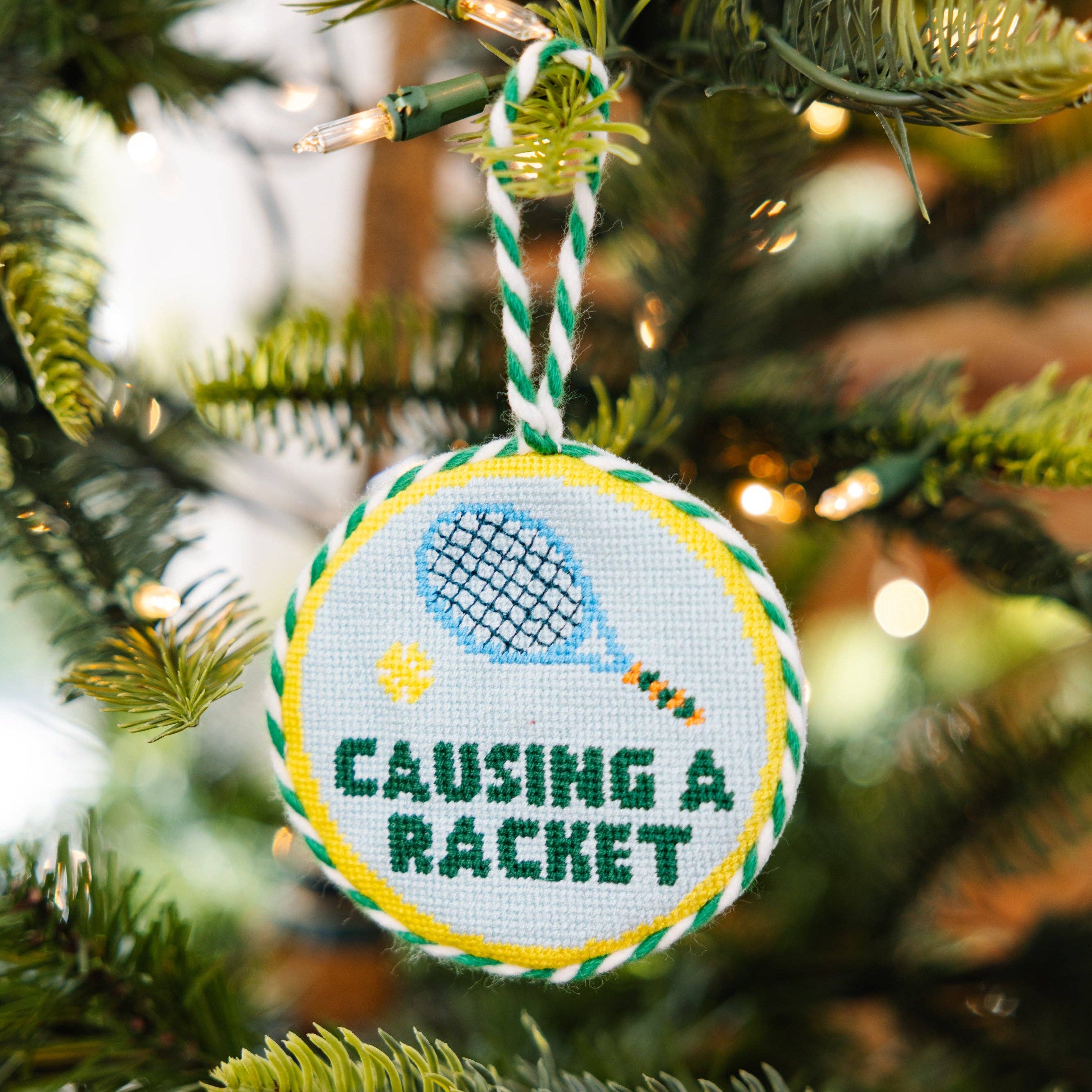 Needlepoint Ornament - Causing A Racket