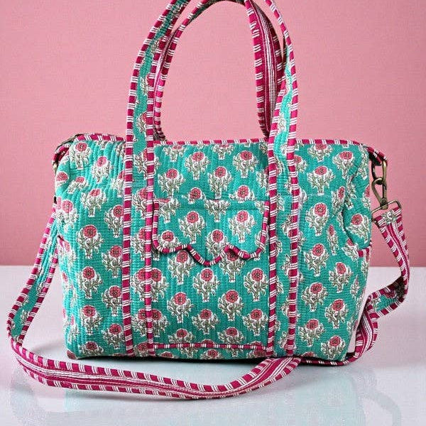 Marley Teal and Pink Floral Duffel Bag