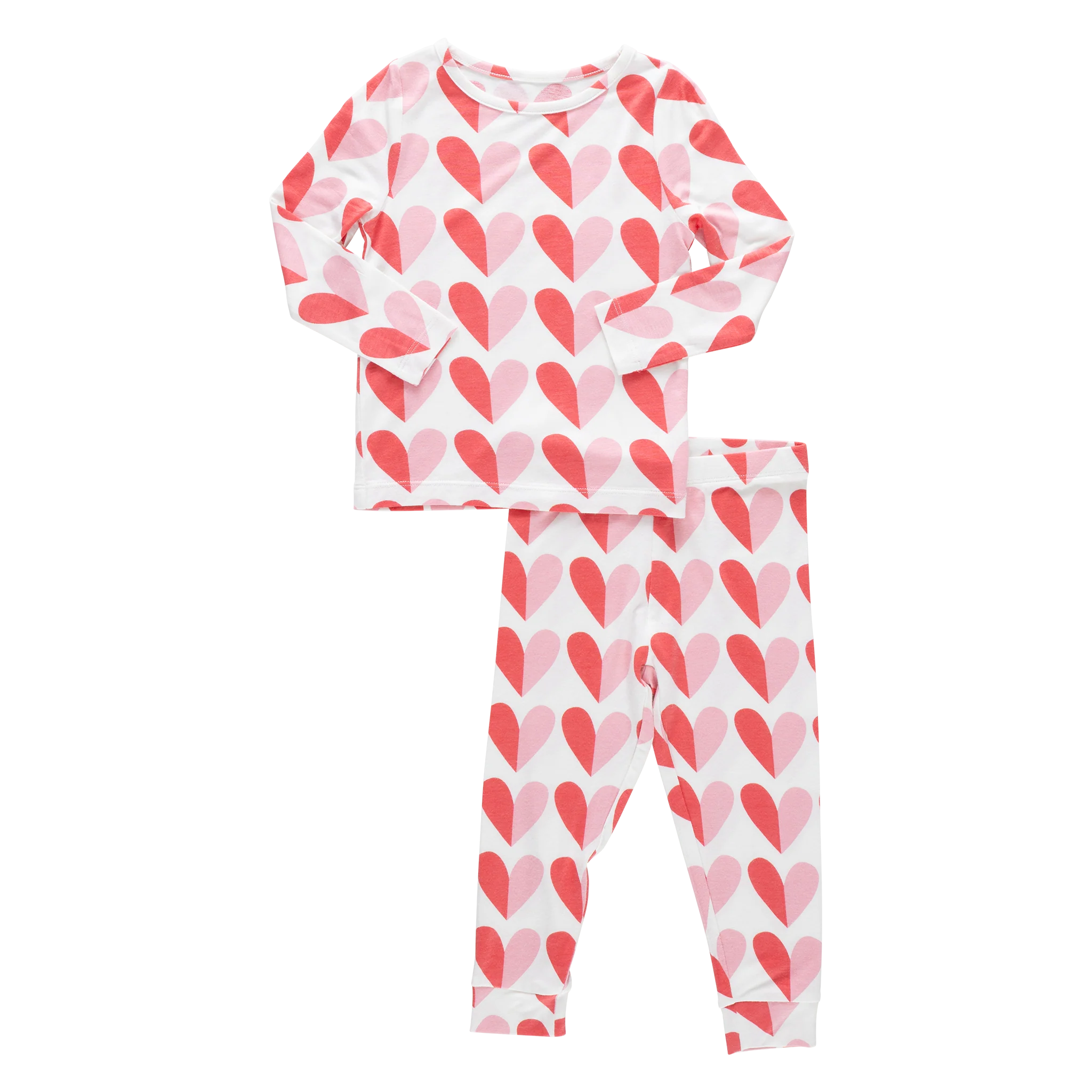 Kids Bamboo Pajama Set- Pink Half Hearts
