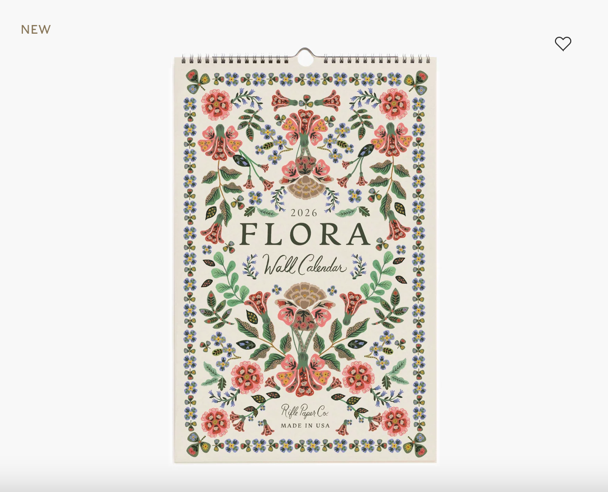Our 2026 Flora calendar includes 12 months of lush illustrations, based on our new Gracie floral pattern, finished with a spiral binding and center notch for simple hanging