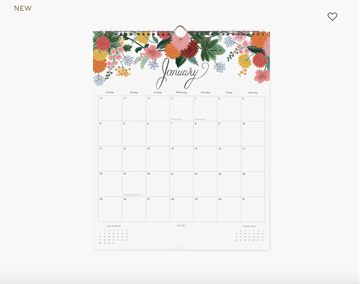 A little extra beauty for your day-to-day plans. In this twelve-month appointment calendar, each month features space for notes and daily engagements, plus a spiral binding with a center notch to make hanging simple