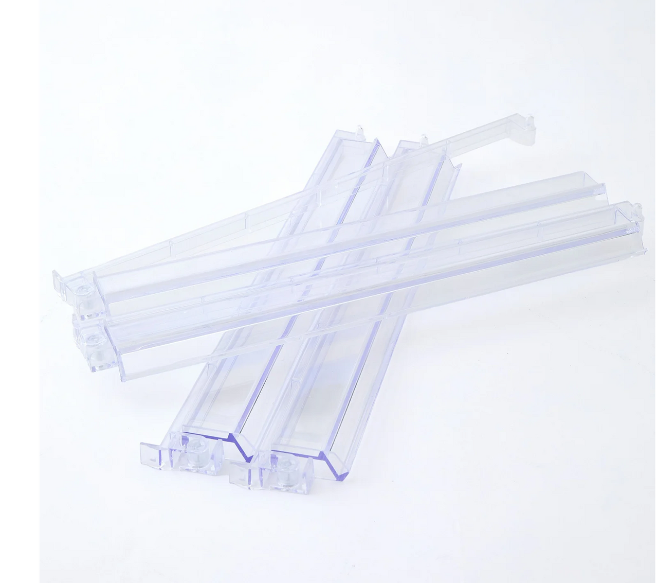 Each set includes four clear acrylic racks with attached pushers, with a stack length of 18.5 inches. Don't forget to complement your set with our Let's Rack and Roll bag, perfect for storing your racks and pushers in style between games.