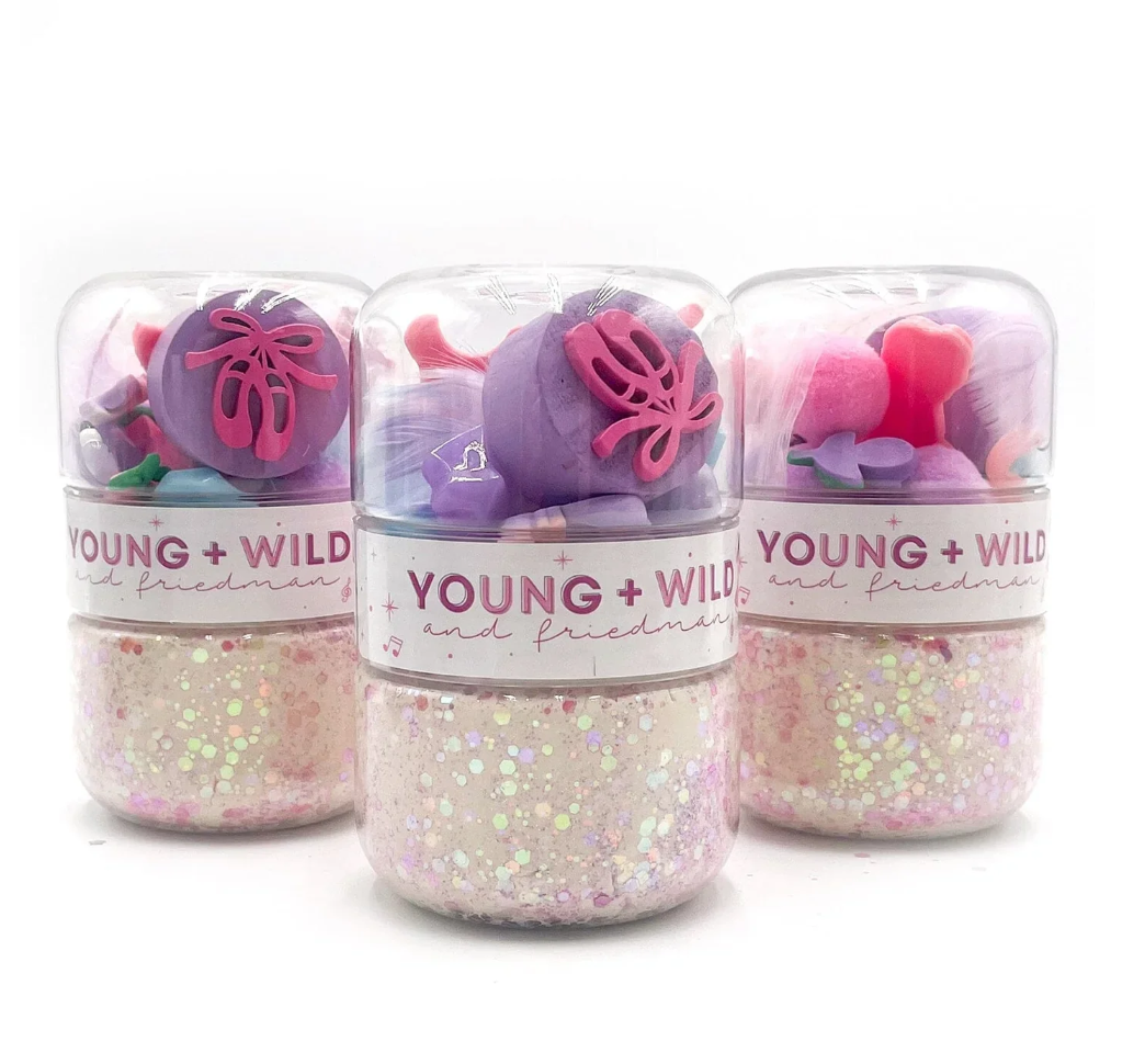 This Ballet Grab & Go Dough Jar comes with our amazing all-natural sensory dough and a separate screw-on jar filled with everything you need to make the cutest little scene!