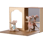 Open the doors of this magical playset and explore a world of dance, stardust and storytelling. This enchanting set transforms from a cosy mouse house to a ballet studio where dreams take centre stage. The mirrored wall glimmers while the magnetic barre holds fast to every tiny paw as the mice rehearse their grand performance. Two ballet mice, already dressed for the spotlight, wait eagerly in their beds, ready to twirl and tell their stories on stage.