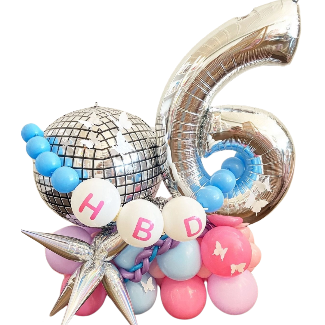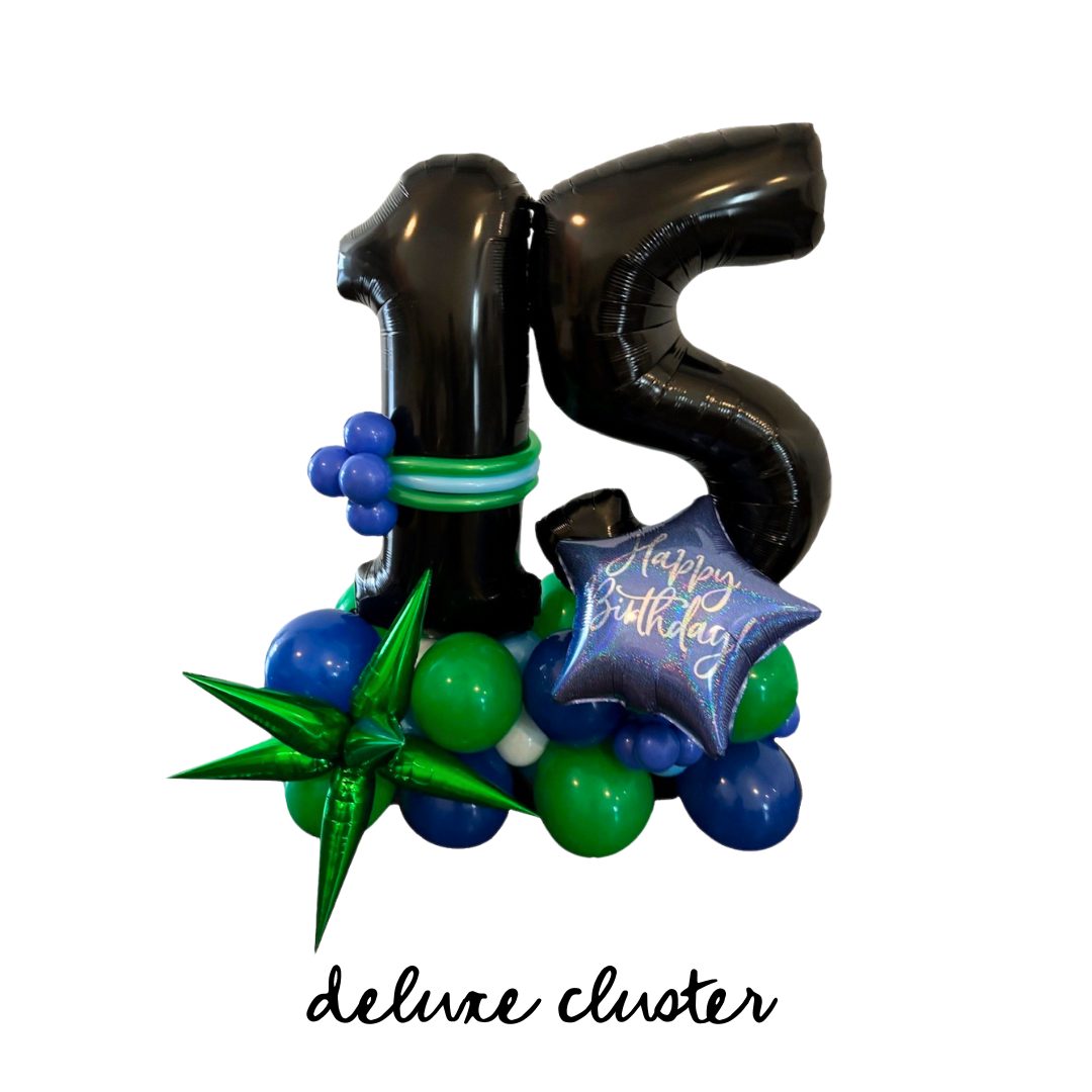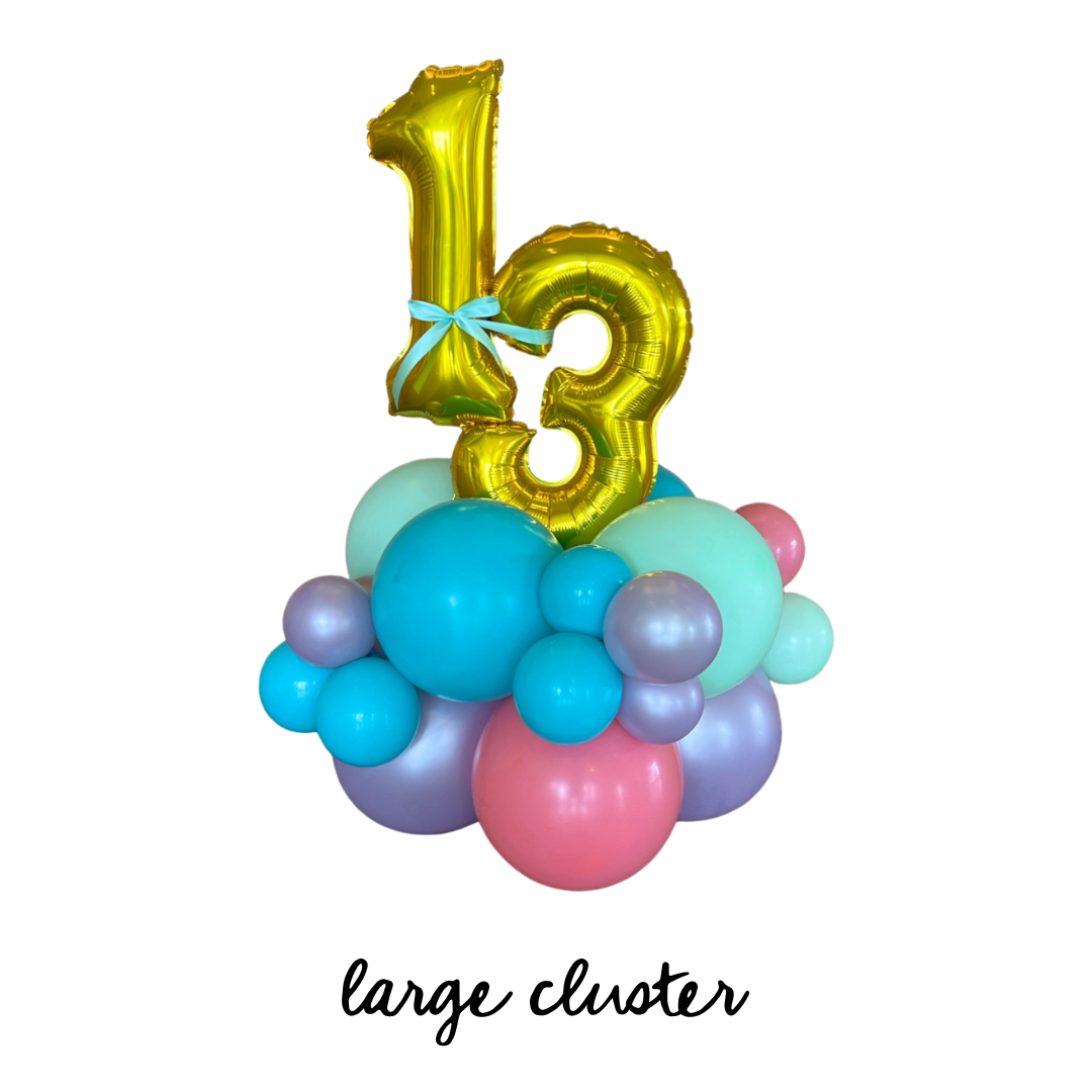 Large Cluster: You can do 1 large number or 2 small if you want to put the age. Otherwise we can do a fun themed foil on top!