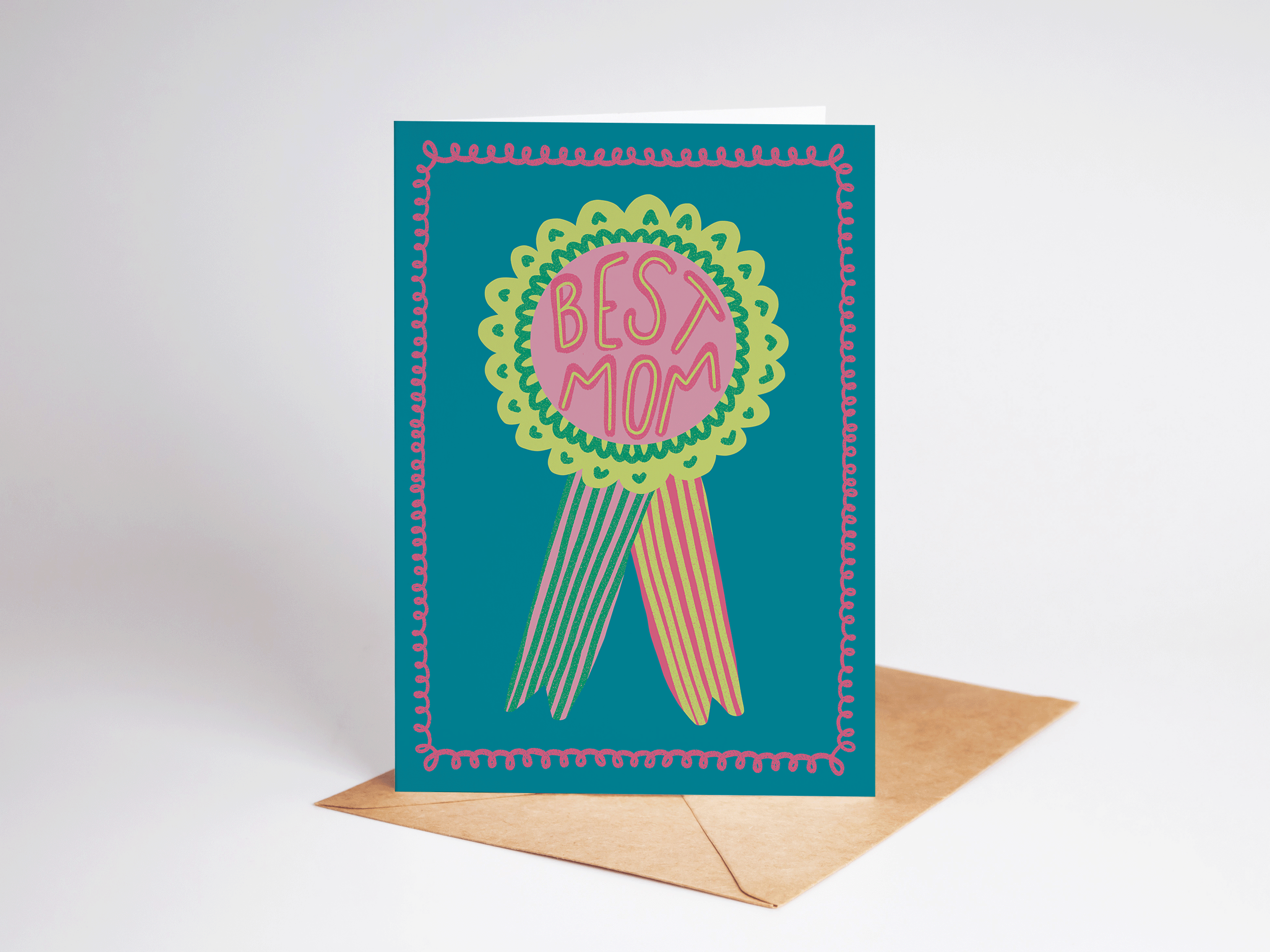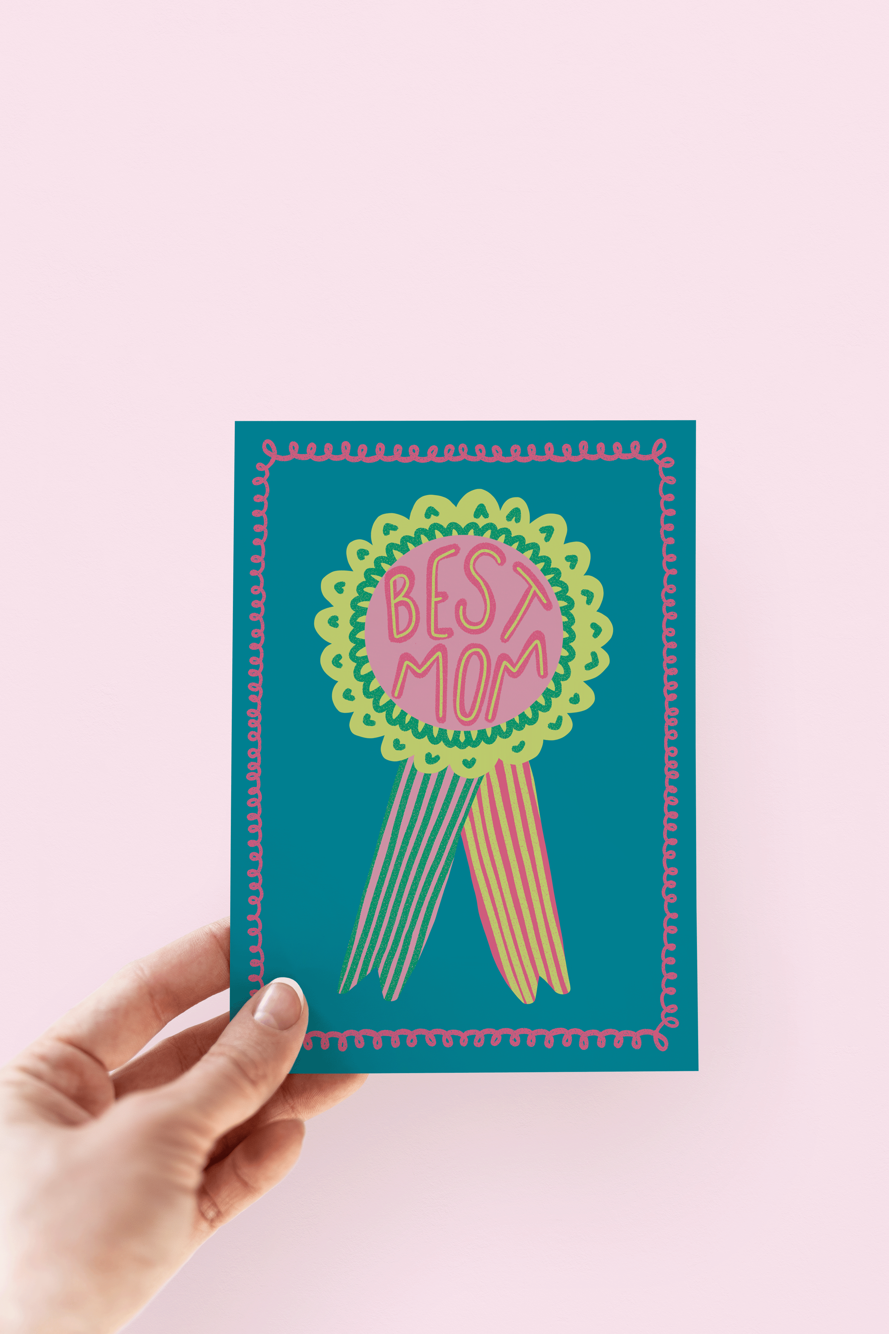 Let the mom in your life know how you feel with this bright and joyful 5x7 card, featuring a colorful winner ribbon and the simple phrase "BEST MOM". The card is blank inside for your own personal message, and comes with a brown kraft envelope. Perfect for Mother's Day, mom appreciation, mom birthdays, and more!