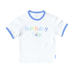 Celebrate his special day! This classically cute white boys' t-shirt features soft fabric, a sweet rainbow "birthday boy" sentiment, and a pop of blue in its collar and sleeve details for a playfully polished style that's perfectly party-ready.