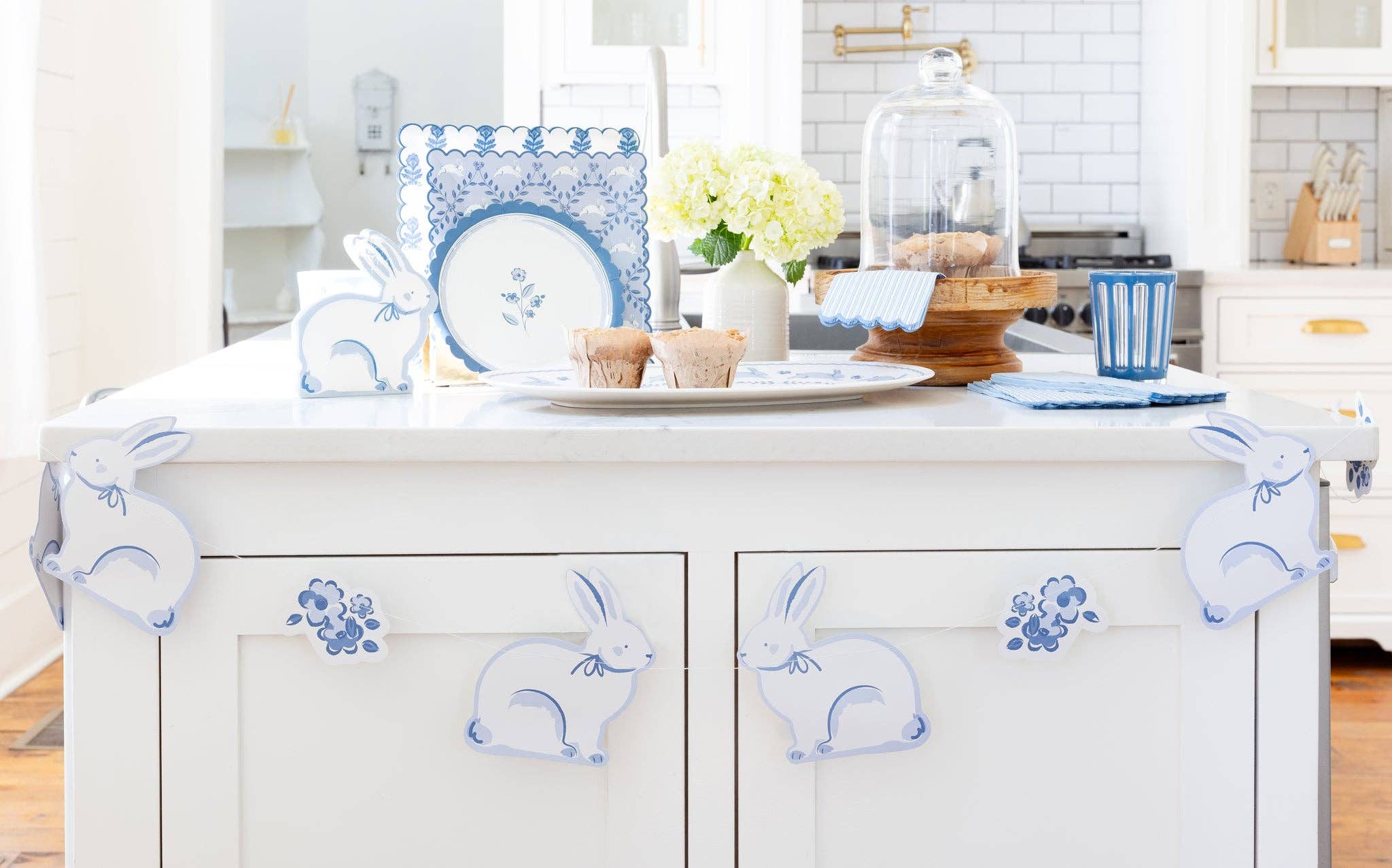 Hop into Easter celebration with this charming blue bunny banner! Perfect for cottage-style décor, this delightful garland brings whimsical bunny designs in soft blue tones to your spring festivities. Create an enchanting atmosphere that guests will love with this festive, easy-to-hang banner.