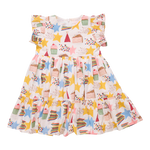 Cel-e-brate Good Times! Artist Charlotte Janvier pulls out all the stops in her fabulously festive Birthday Star print shown here on our Girls Jennifer Dress