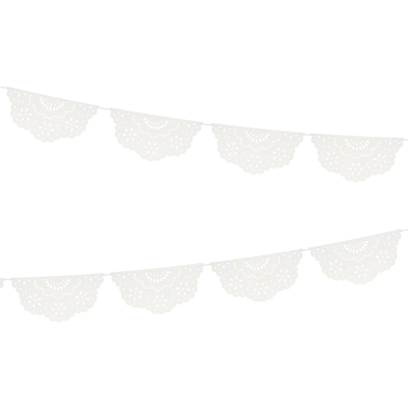 This pretty party range is inspired by broderie anglaise, a delicate lace eyelet embroidery design that's back in style. White scalloped pennants team with soft ivory embossed details to make this paper garland look so stunning. It's perfect to hang in the porch or doorway, on the wall or draped on the party table - ideal for a bridal shower or a baby shower. It's beautifully packaged in a paper envelope, idea to store the garland in to re-use time and time again, and to make it special to give as a fabulous decorative gift too