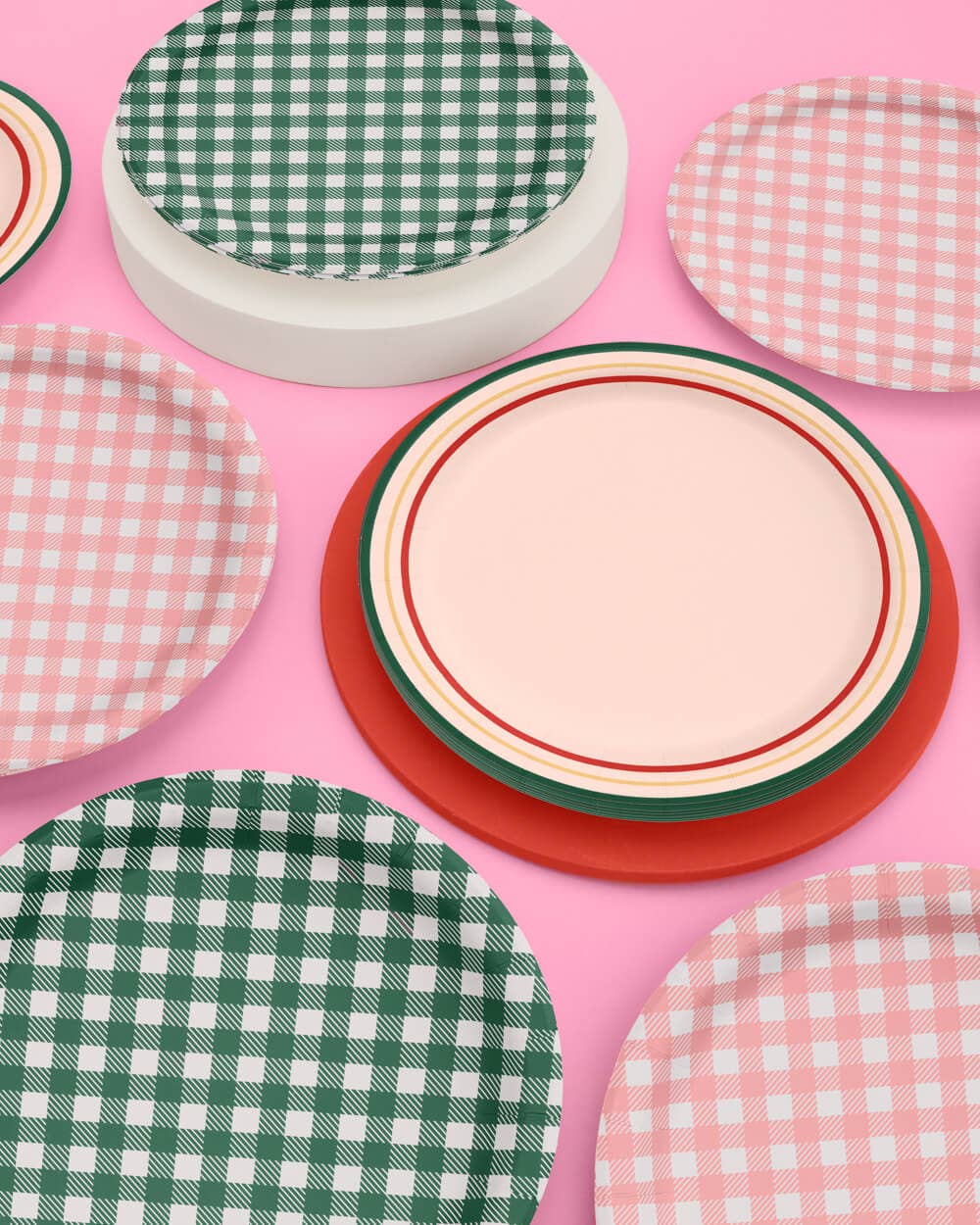 24 gingham 9" paper plate set