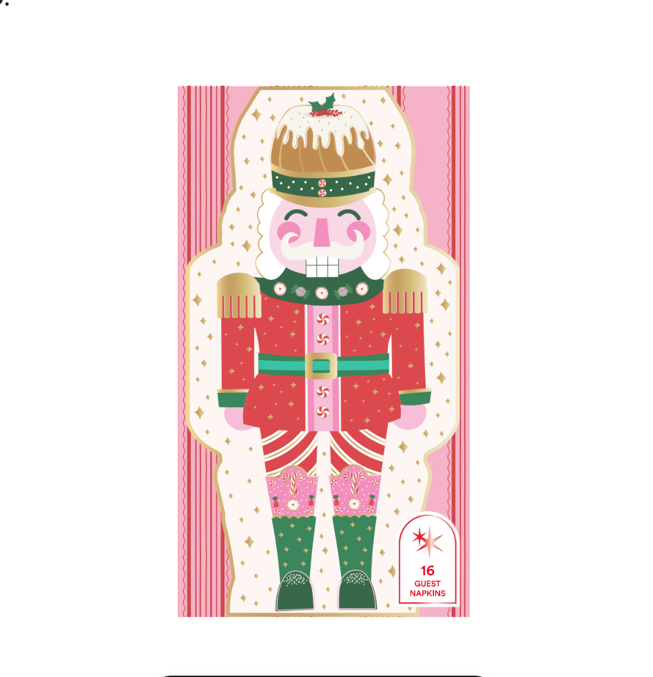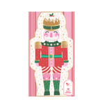 These festive guest towels feature a cheerful nutcracker design decked out in vibrant red, pink, green, and gold with playful details like a holly-topped hat and glittery accents. Perfect for holiday gatherings, they add a whimsical and merry touch to your bathroom, bar cart, or buffet table—both decorative and functional! Size- 8"; pack of 16