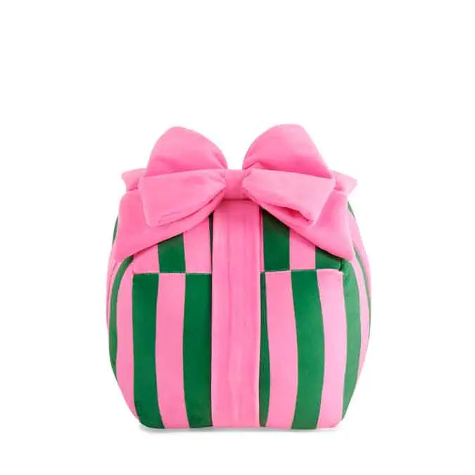 Measures L 9" x W 9"Made from polyester, Wrap your space in holiday magic with the Stripe Gift Box Medium Pillow. Featuring vibrant pink and green stripes and a plush pink bow, this present-shaped pillow is equal parts cozy and cute. Its medium size makes it a standout on beds, sofas, or anywhere you want a little seasonal sparkle. It’s festive, fun, and guaranteed to make spirits bright.