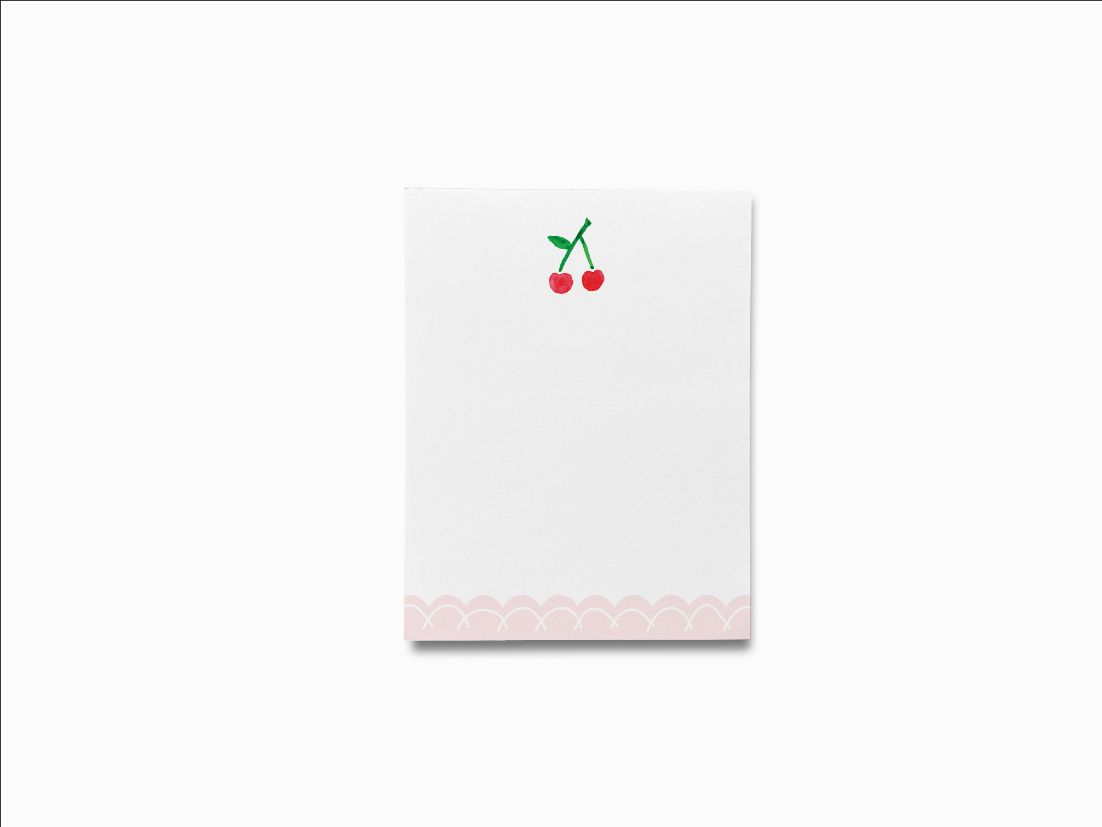 • 100 Sheets padded at the top with a thick chipboard backing • Measures 4.25" x 5.5" (small) • Printed on 70lb high quality matte paper with a beautiful smooth finish • Painted, designed, printed and packaged in the USA • Hand packaged with care and ready to gift or use Cherry Notepad