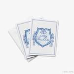 Christmas Crest Nutcracker Cards | Blue and White Holiday Greeting Cards | Nutcracker Family Stationery | Festive Christmas Card Set | Elegant Nutcracker Design