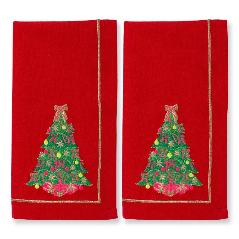 Elevate your table setting with the Vondels Christmas Tree Embroidered Napkins, a set of two elegant cotton napkins.
