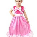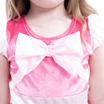 - Vibrant pink coloring on the velvet stretch bodice and china silk skirt