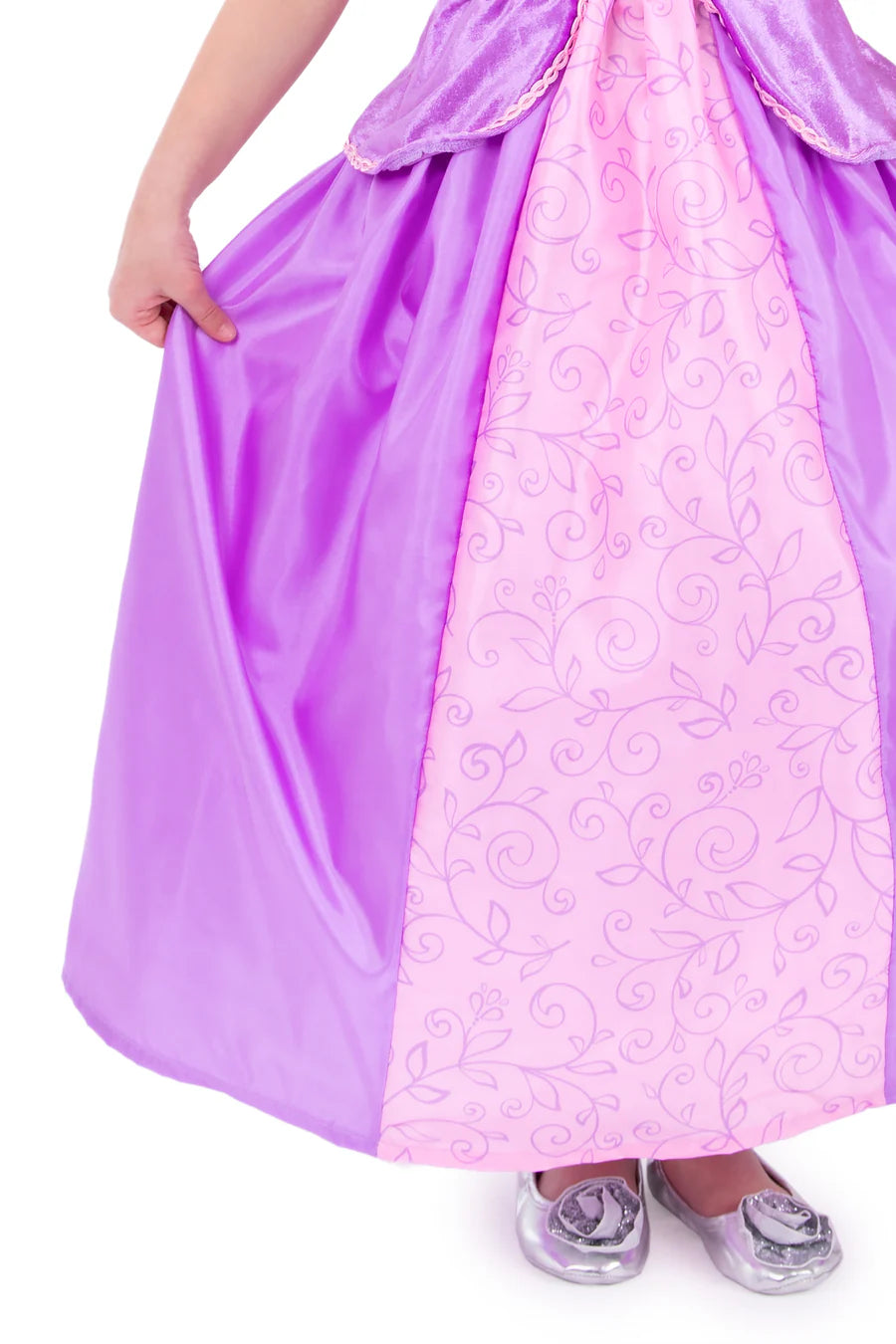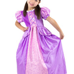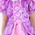 This Classic Rapunzel dress is made from a sparkly crushed velvet bodice and amazing gold trims. The unique princess sleeve is absolutely elegant, and the beautiful lavender skirt makes this dress perfectly princess. Features: clothing quality fabrics; machine washable. Comfortable; no itchy fabrics or trims