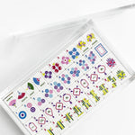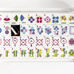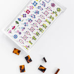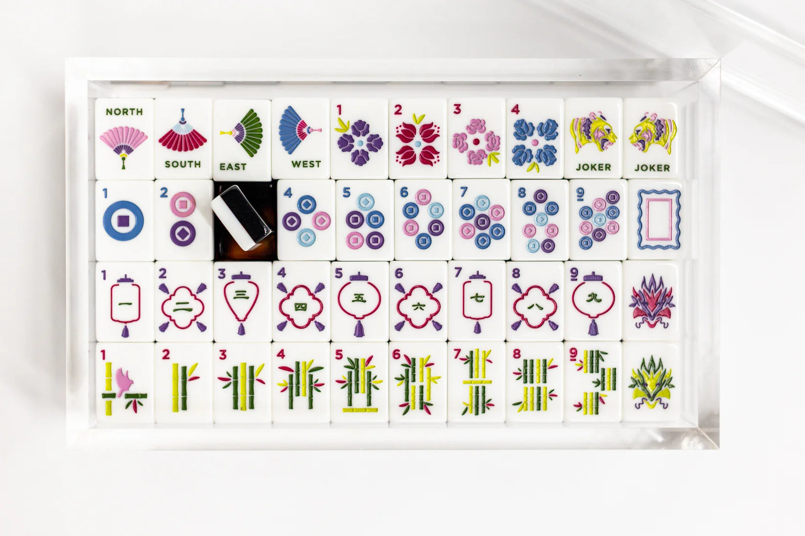 The classic tile set is our take on an American mahjong tile set and is beautiful, dainty, and feminine. We incorporated some of our favorite colors as well as some beautiful symbols and icons and a gorgeous tortoise shell layered back.