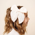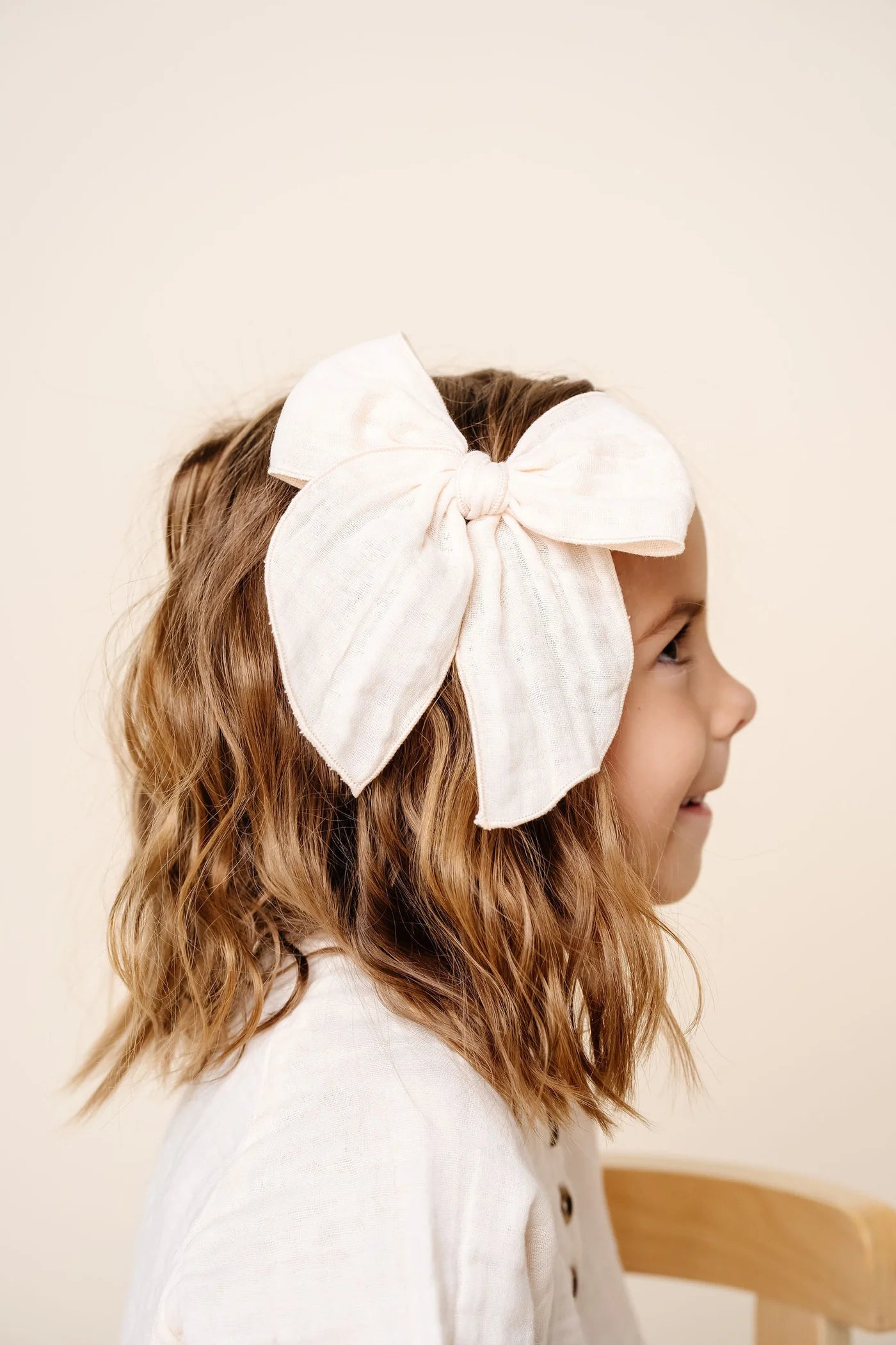 Our Heirloom Bow is soft, sweet, and full of vintage charm. With its full shape and long tails, it’s perfect for photos, play, and every precious moment in between.