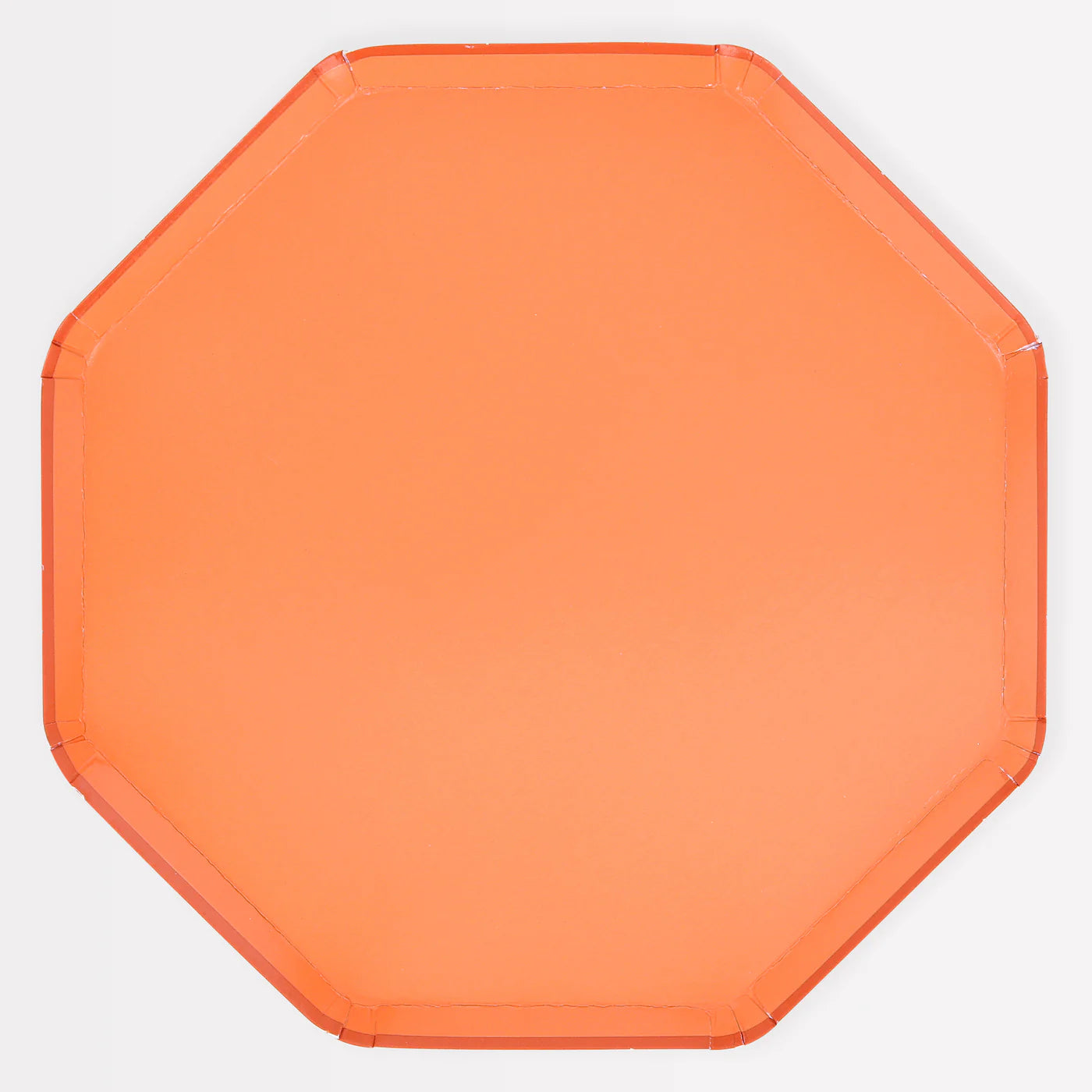 If you're looking for paper plates to add a pop of color to your party table then you'll love these papaya-hued beauties! Colored on both the front and back for an elegant effect, and the eye-catching octagonal shape really ups the wow-factor. They're ideal for any celebration or dinner party where you want an upbeat vibe. The plates are part of our stylish new take on mix and match tableware
