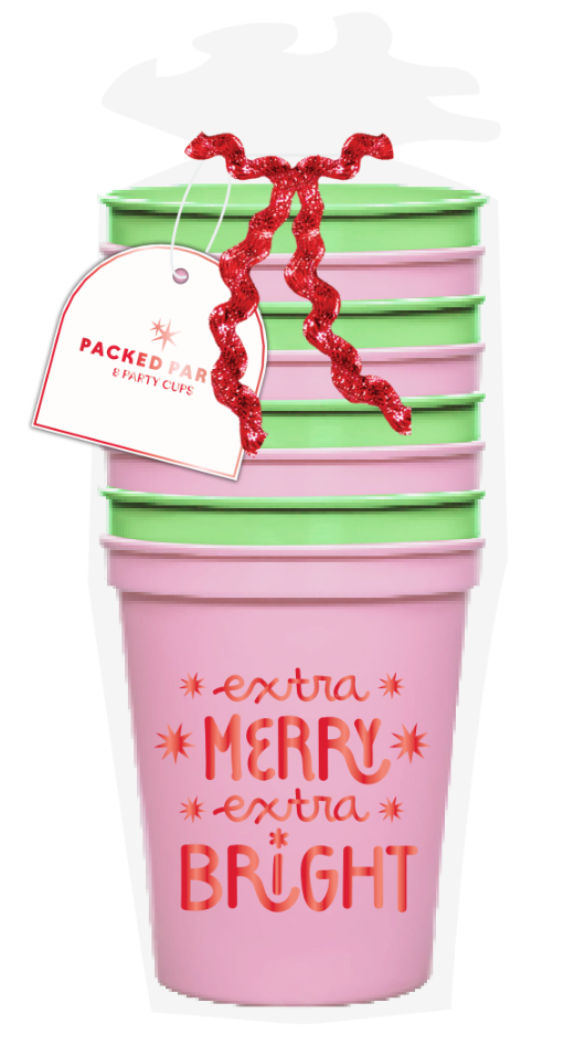 Make any holiday party or event a little merrier this season thanks to these Extra Merry, Extra Bright shatterproof cups. Wrapped with a ribbon and in a set of ten, these reusable cups are the ideal hostess gift, office party accessory, or Secret Santa. Cheers to that!