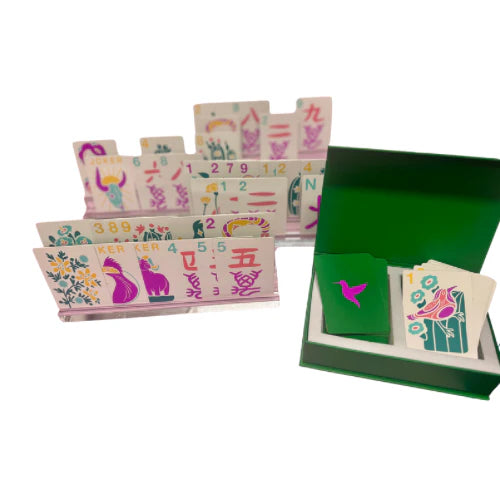 DESERT BLOOM AMERICAN MAHJONG PLAYING CARDS AND LUCITE RACKS
