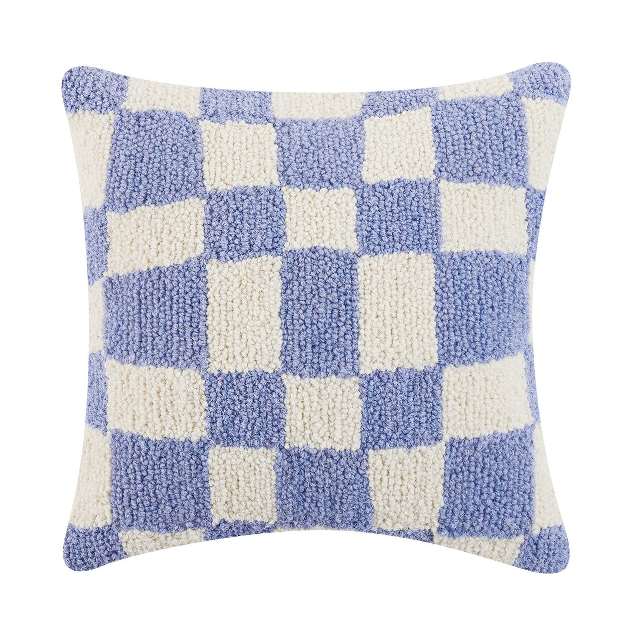 The Disco Checker Hook Pillow from Peking Handicraft has a wonky lilac checkerboard pattern. It will definitely add fun to your space!