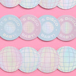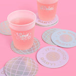Let’s get groovy.|| Get down on it, girl! Be the dancing queen for a night with our totally groovy disco ball printed plates. The night is young and the music's high! 16 coasters; 8 pcs per design Iridescent foil design on both sides Made out of a thick, disposable paper