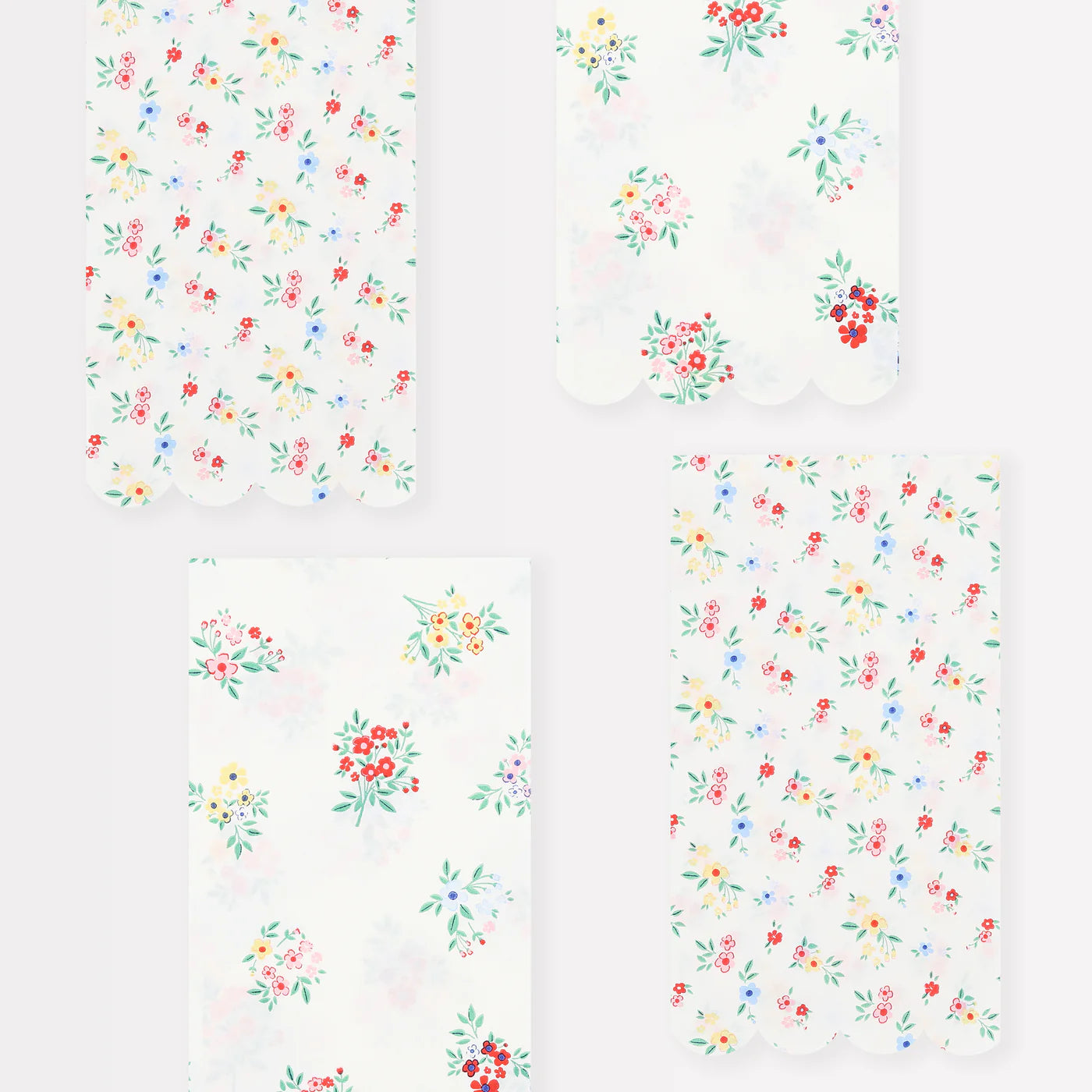 - Each set includes two different floral patterns, ditsy clusters and posy bouquets
