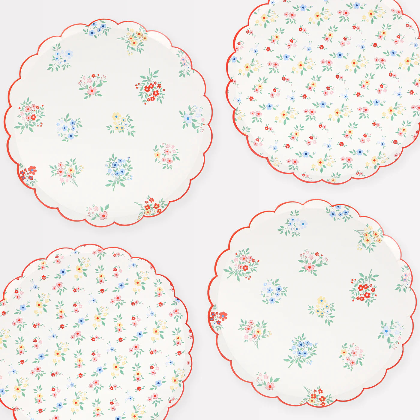 Dainty posy bouquets and ditsy floral clusters add effortless elegance to any setting. These classic designs are influenced by fashion-forward floral pattern trends, which include a touch of red to keep the look modern and fresh. Use these paper side plates, with a stylish scalloped edge, for baby showers, bridal showers, afternoon tea, garden parties or wherever you want a sophisticated effect