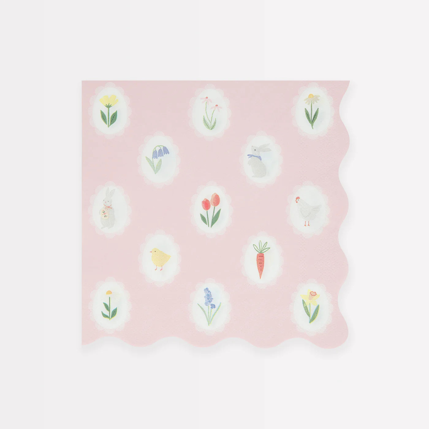 Cameos are having a moment – beautifully inspired by vintage textiles – and our clever designers have made them into the most charming Easter napkins. The combination of the soft pink background, with springtime flowers and icons, will look elegant at your Easter dinner