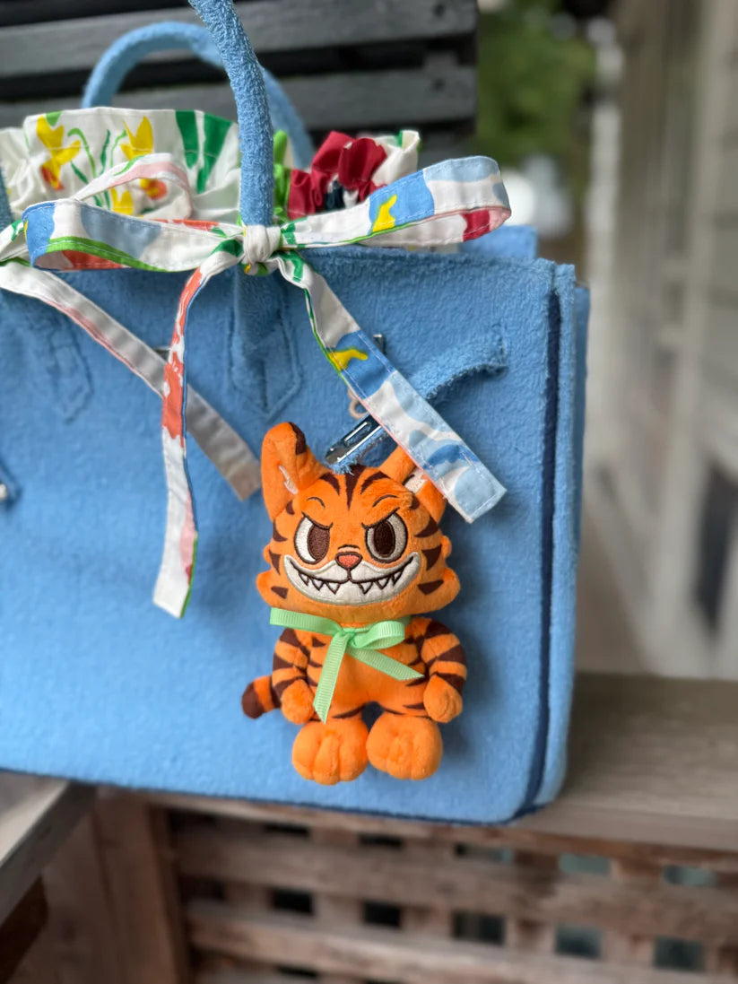 Meet El Jefe—our newest bratty little mascot. This tiger plushie might be pocket-sized, but don’t be fooled: he’s got main character energy and a bite to match. Fierce grin? Check. Signature green grosgrain bow? Naturally. Red heart embroidered on the back of his head? Of course - he's got a soft side (but he'd never admit it).