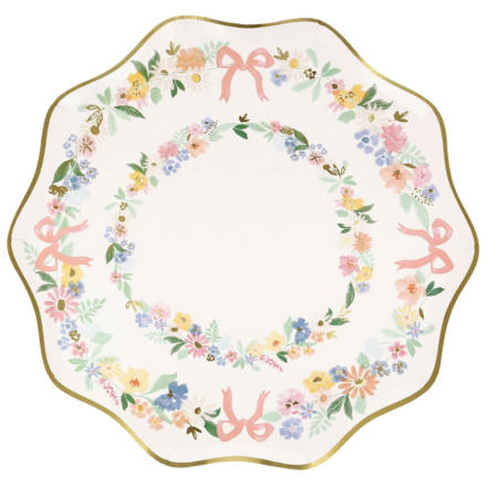 If you're looking for party plates that are traditional and stylish, then you'll love these beautifully crafted creations. The elegant combination of watercolor flowers and on-trend bows, in dreamy pastel colors, is perfect for garden parties, bridal showers or any celebration where you want a refined effect.