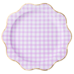 Elegant lilac gingham dinner plates with a gold foil rim. Perfect for Easter brunches, tea parties, and Mother’s Day celebrations, adding a refined and sophisticated touch to any spring table.