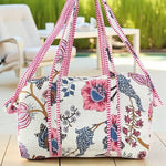 Your new favorite travel companion! This beautifully quilted duffel features a charming floral print in soft pinks and blues with coordinating striped handles for a touch of playful style. Spacious, lightweight, and oh-so-comfortable to carry, it’s perfect for weekend trips, gym days, or spontaneous adventures. Crafted from soft, high-quality fabric with a sturdy zip closure, this bag combines function and flair in the most delightful way. Pretty enough for display, practical enough for everyday use. 🌸✈️