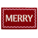 Measures L 30" x W 18"Made from coir and PVC, Make spirits bright right from the doorstep with the “M-E-R-R-Y” Doormat! This festive mat features bold ivory lettering on a cheerful red background, framed by a playful pink squiggle border that adds a pop of personality. Made from durable coir fiber, it’s designed to keep shoes clean and bring a little holiday magic to your entryway. Whether you're welcoming guests or just dashing through the door, this mat sets the tone for a joyful season.