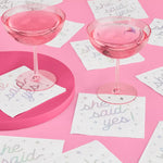The era of all era's.|| The long awaited era of all things white and a big, shiny ring... nothing says engaged more than these napkins. 25 3-ply paper napkins 5x5 in, perfect cocktail size White napkin + iridescent foil "she said yes!"