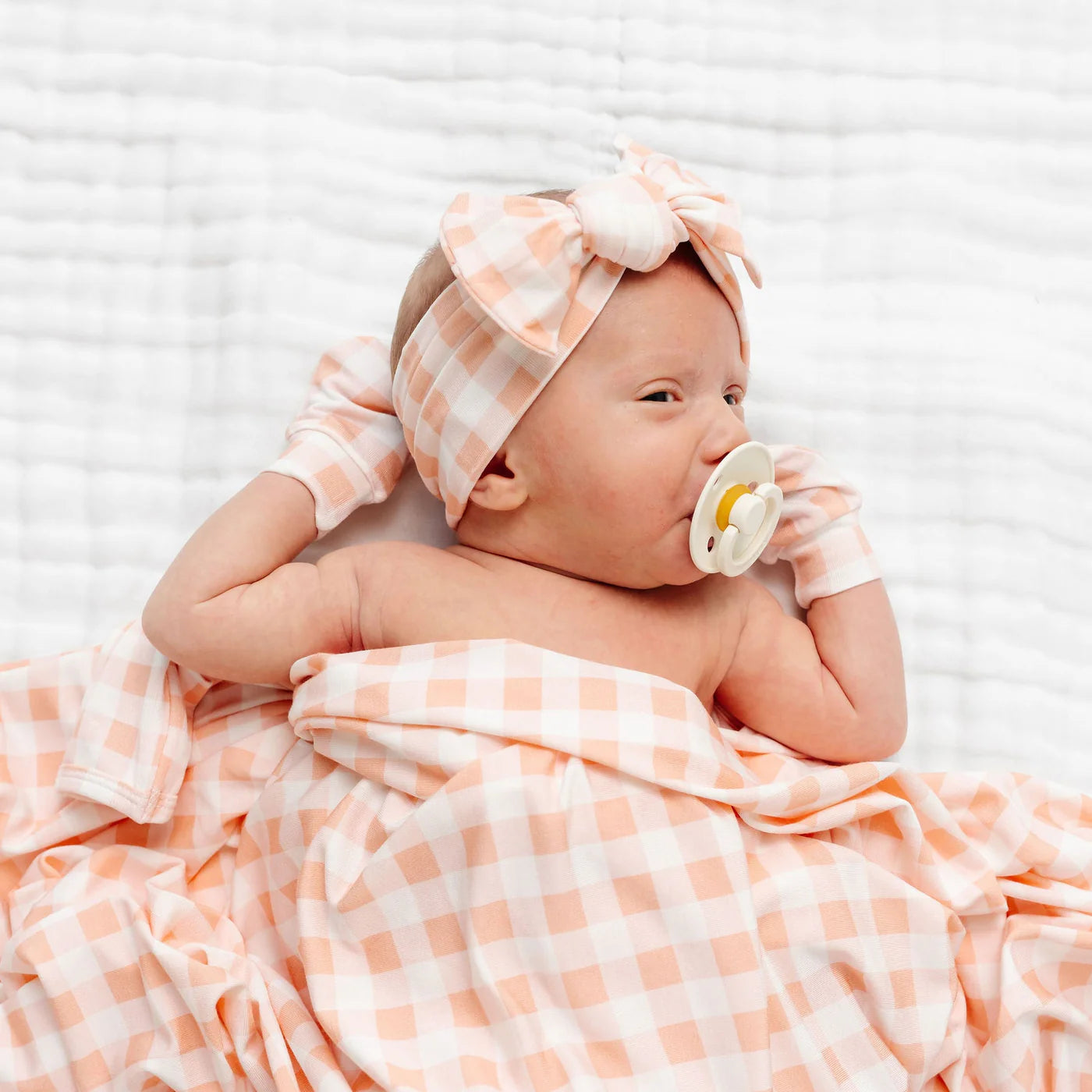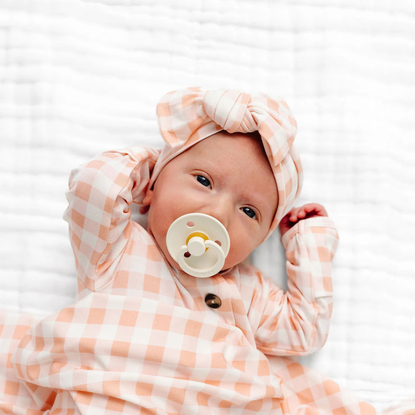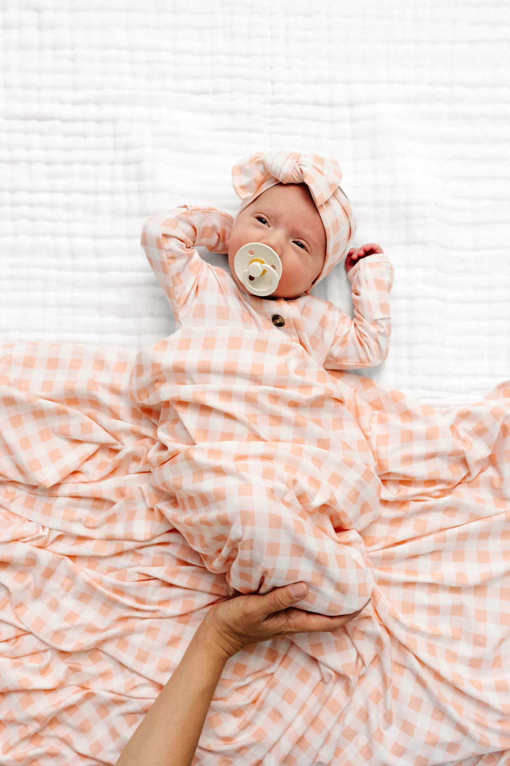 The sweetest accessory hand tied with love. Comfortable enough to wear all day, stretchy enough to grow with her (newborn through toddlerhood), and topped with a bow.