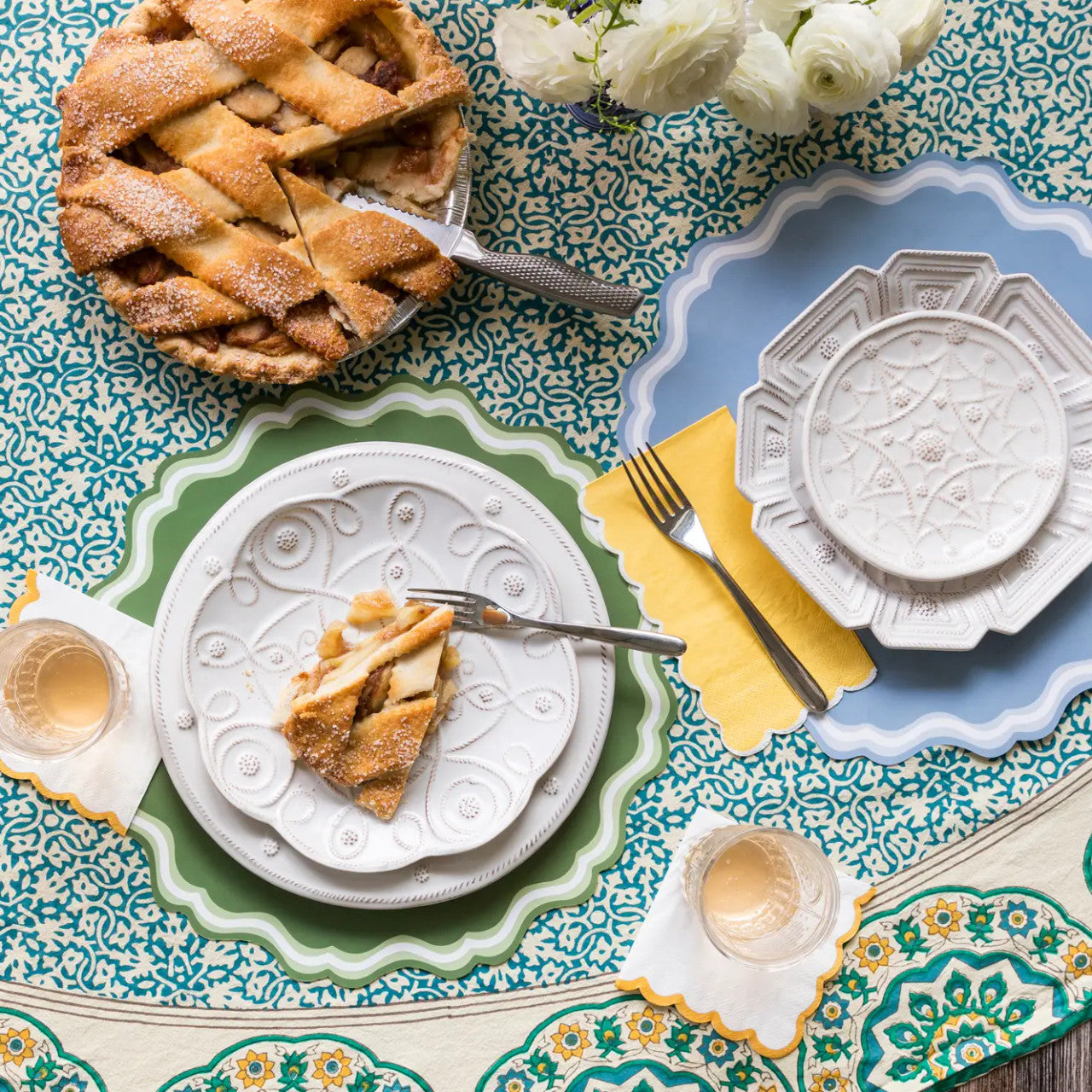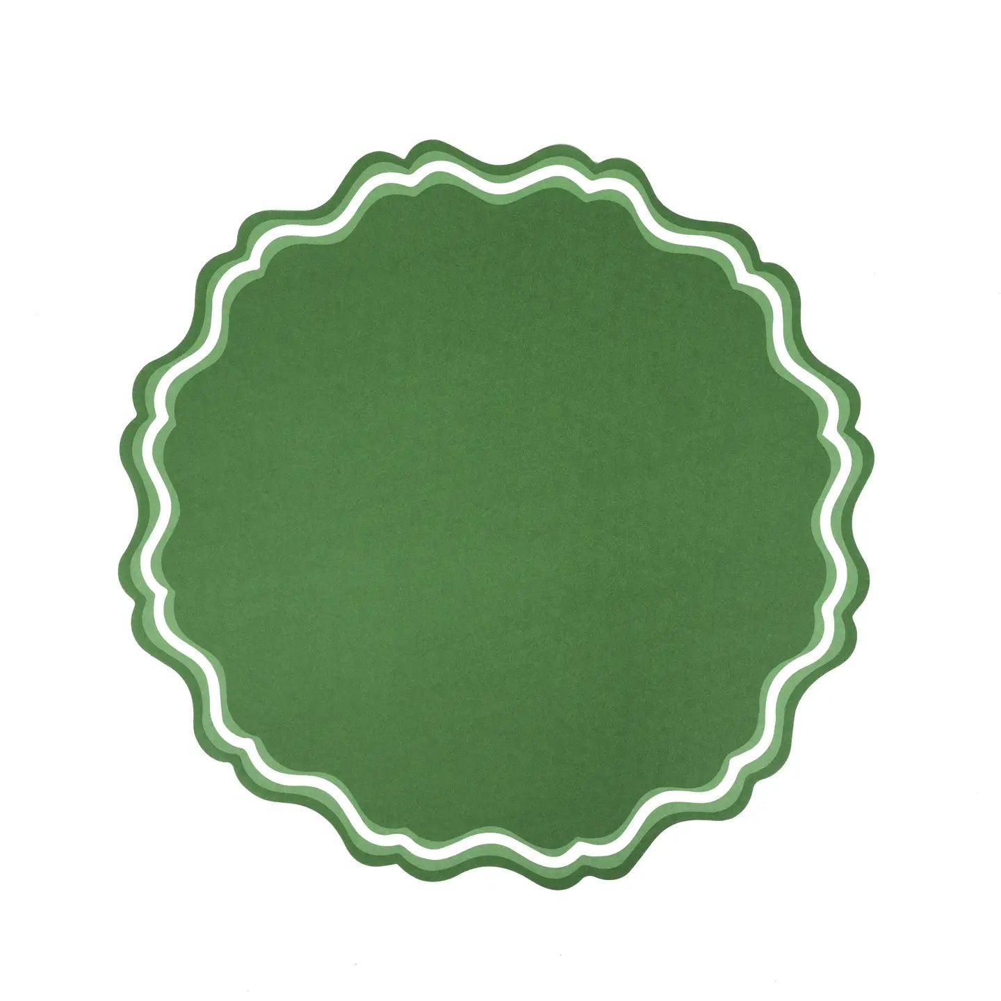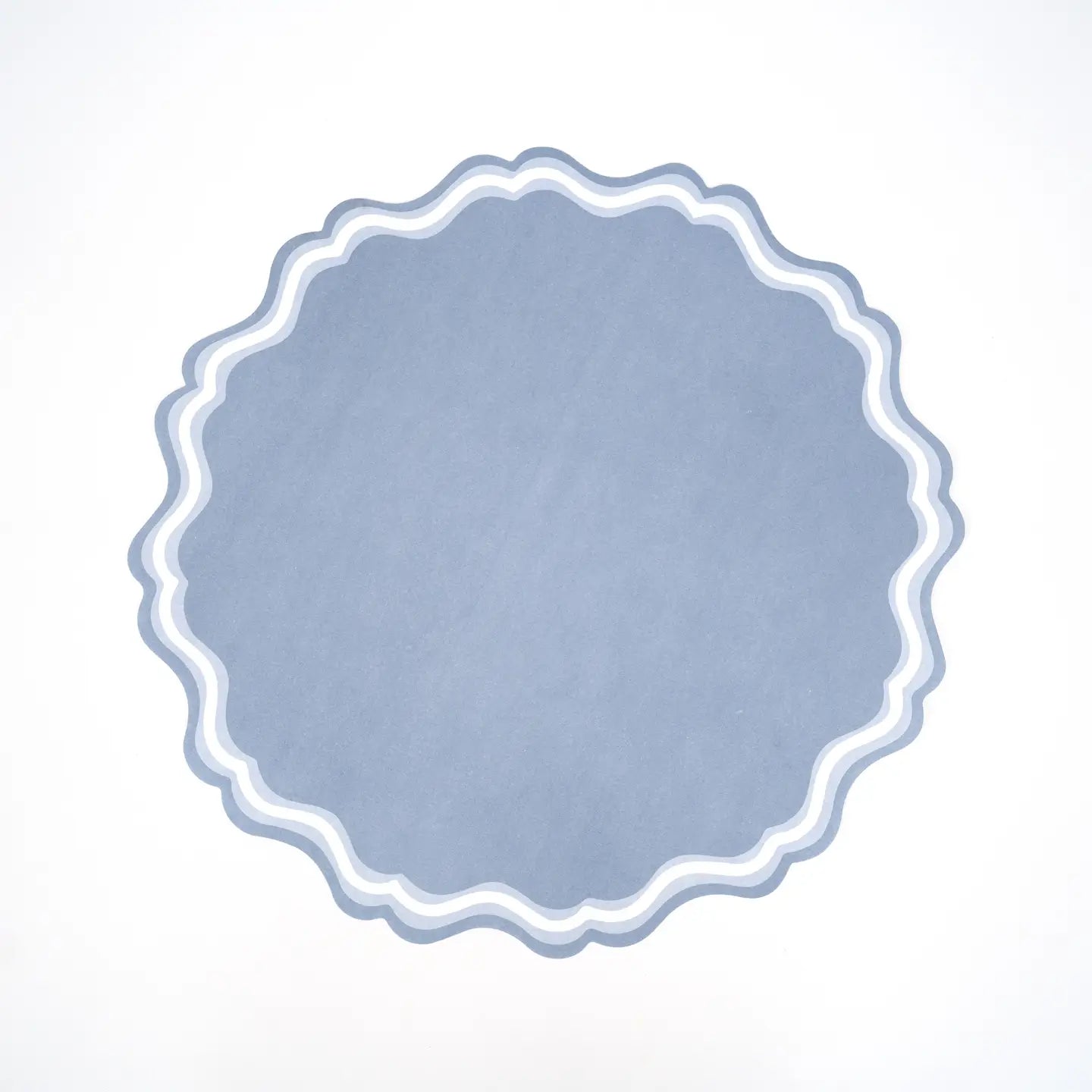 The Blue Fancy Scallop Placemat is the perfect way to bring a touch of blue to any event - from flower-themed parties to baby showers. With its scalloped edges, it'll have your guests scalloped with delight! Make your table top an outstanding lay out with our uniquely designed placemats. We have designed our placemats so they can be the extra touch that your dinner table needs for any special occasion. Also forget about having a dirty table afterwards, our placemats are 100% recyclable, making it an effortless cleaning plan. Pack of 12 Measures 14" Made from paper Made in China