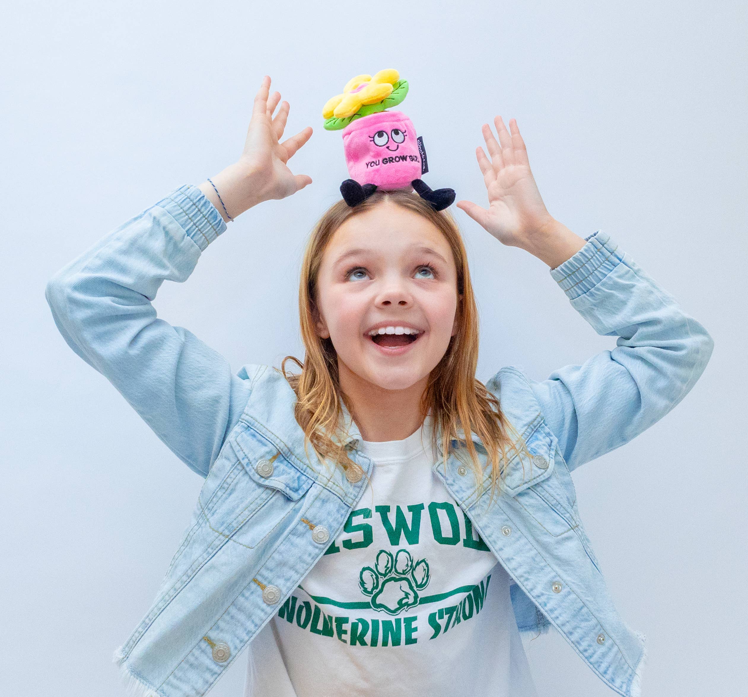 This potted plushie is here to be your daily inspiration. She be-leafs in you and is rooting for you every step of the way! With her by your side, you can do anything you set your mind to! Her sweet eyes, dangly legs, and flower accent are all the encourage-mint you need. She's the perfect inspirational gift for any kiddo! This plush is ideal for children, collectors, or anyone who loves cozy and fun decor. A great addition to gift shops and toy stores!
