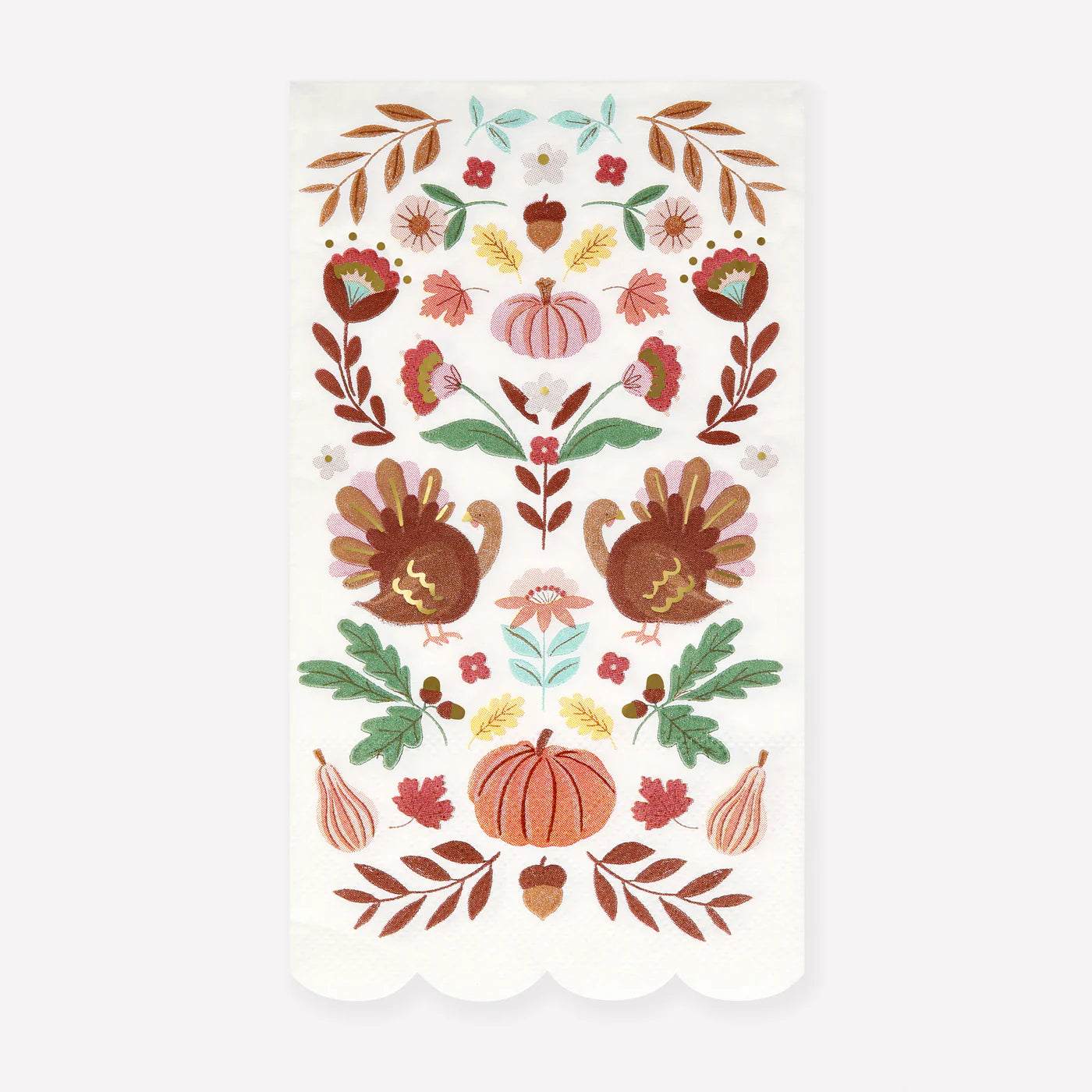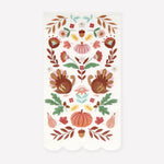 A folk theme is the ultimate way to embrace fall and Thanksgiving's charm. Rich, earthy colours embody this season's warm tones, while harvest-inspired symbols celebrate nature's beauty. Our clever designers have re-imagined these timeless elements for these stylish guest towels, bringing a perfect blend of tradition and trend to your party table. They're ideal to use in a guest bathroom too