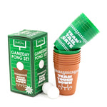 Make gamedays more fun with this Gameday Party Pong Set! Featuring six 16 oz reusable green "team tailgate" cups and six 16 oz brown "team touchdown" cups plus two pong balls, this is the perfect addition to any tailgate or gameday party this season. Now which team will you pick for this ultimate gameday pong match up?