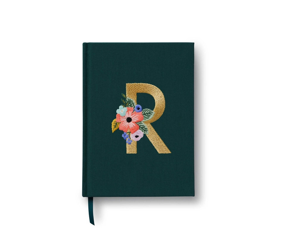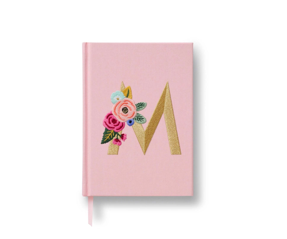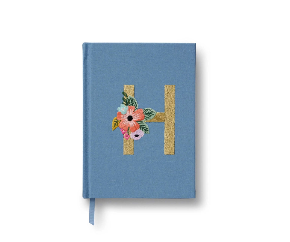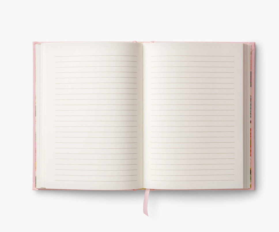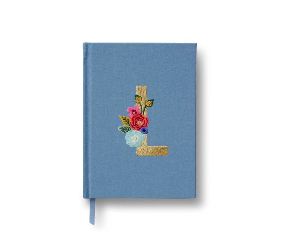 DETAILS Lay-flat binding Book cloth cover with ivory uncoated paper; natural white text paper Floral embroidery on front cover with metallic thread Grosgrain ribbon bookmark 5.75" W × 8" L 240 pages