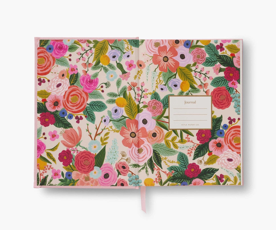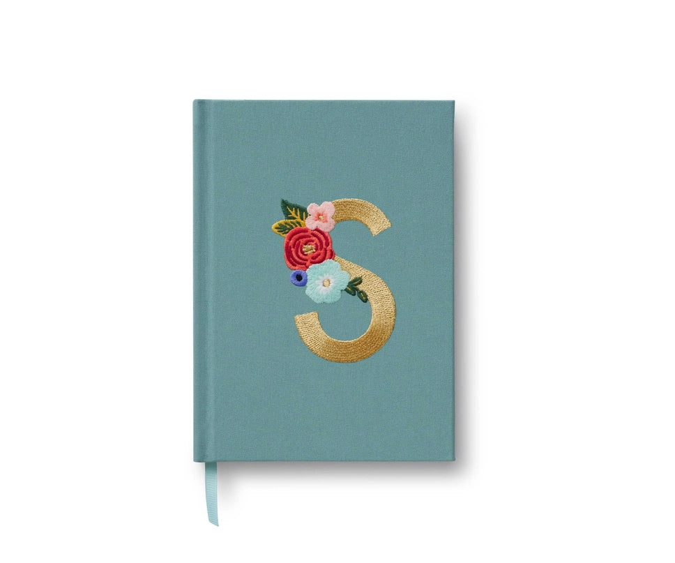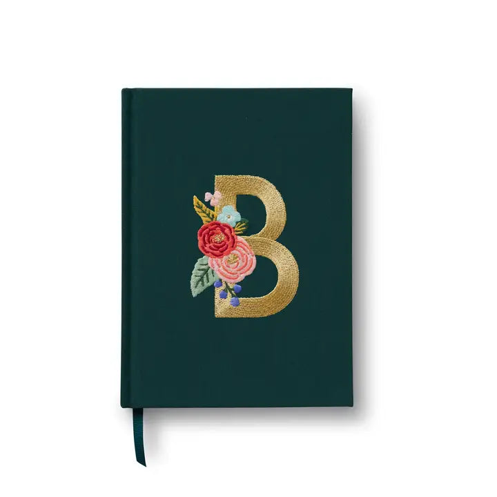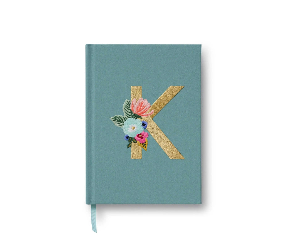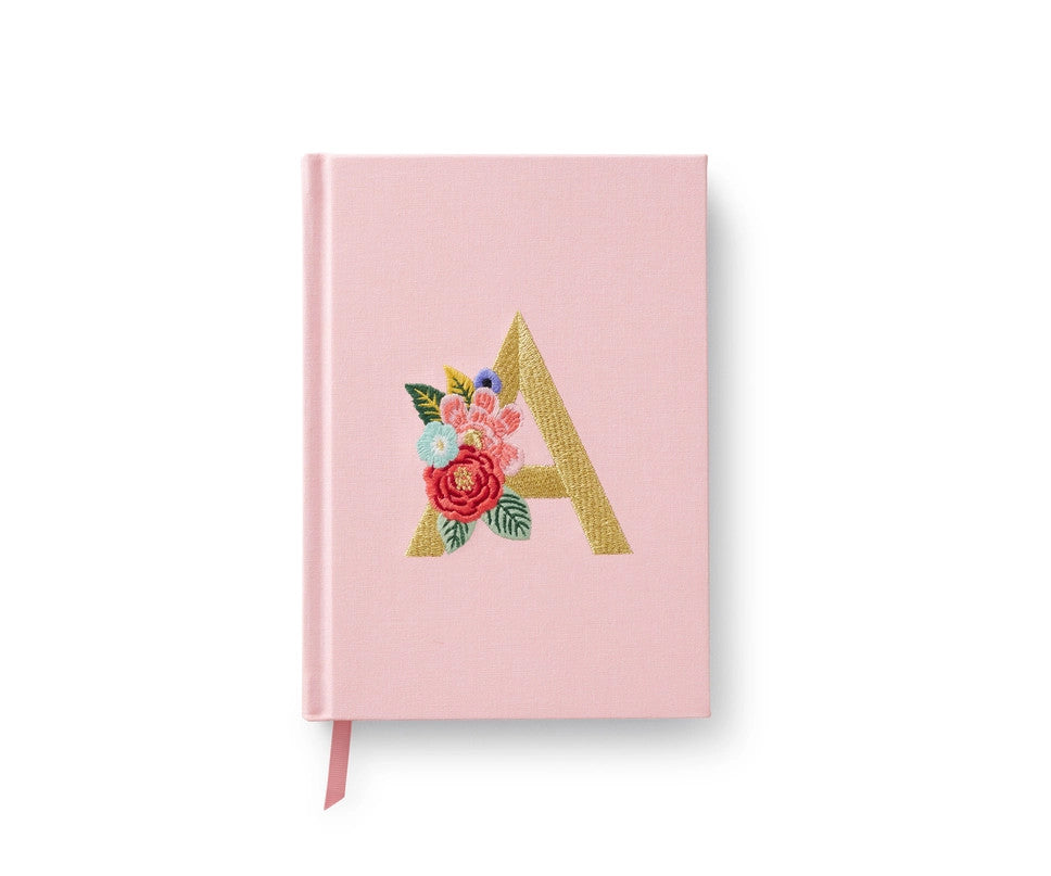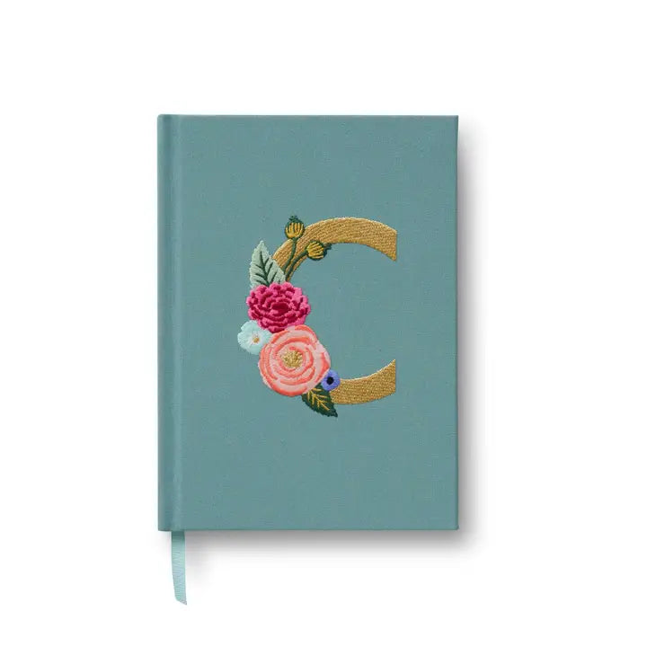 DETAILS Lay-flat binding Book cloth cover with ivory uncoated paper; natural white text paper Floral embroidery on front cover with metallic thread Grosgrain ribbon bookmark 5.75" W × 8" L 240 pages