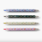 Make note-taking a whole lot brighter with our set of 4 retractable gel pens. Each pen has a different ink— blue, black, red, and metallic gold— with coordinating Estee florals.